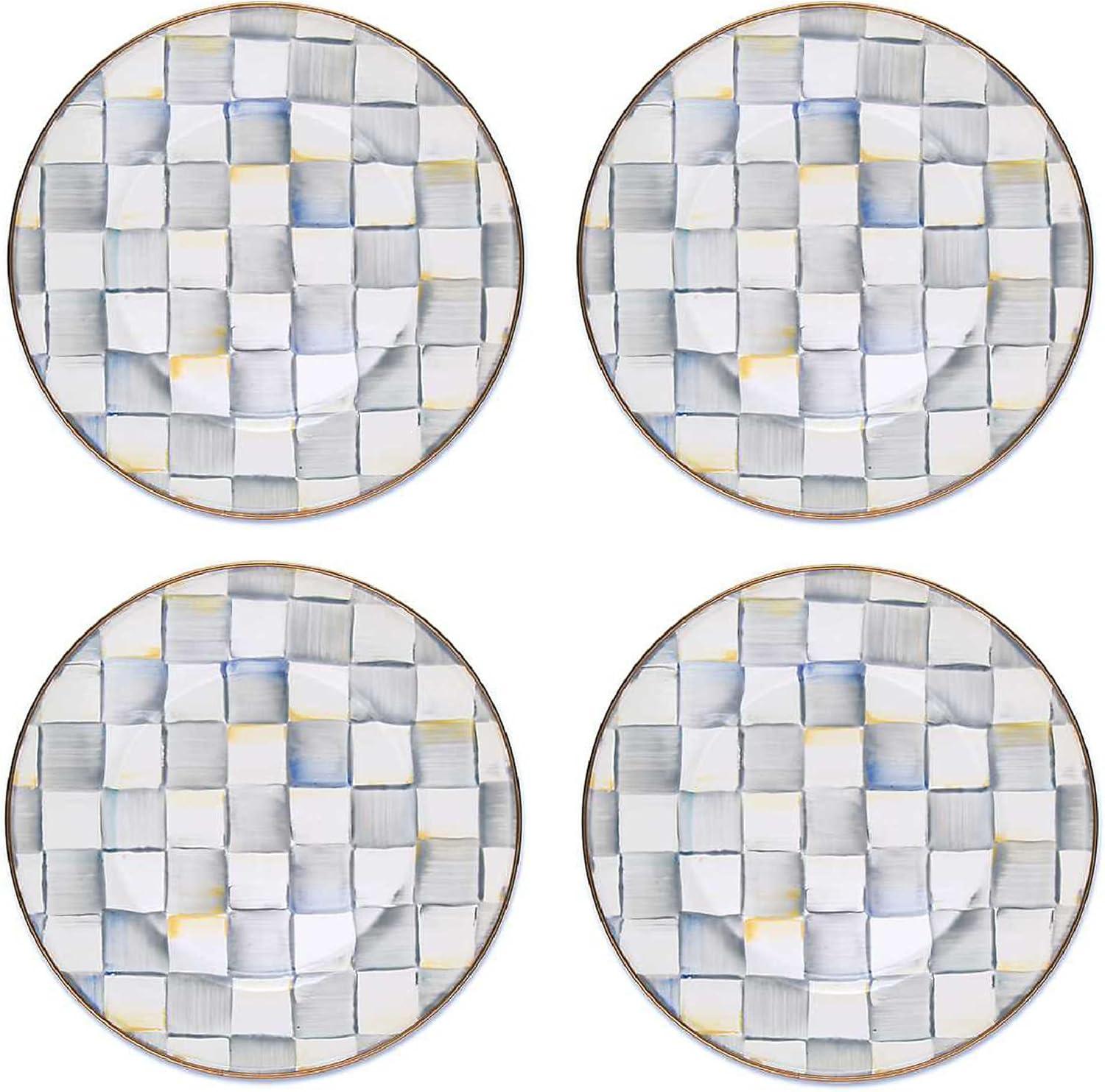 MACKENZIE-CHILDS Enamel Dinner Plate, Decorative Dinnerware Plate, 10 Inches, Brown-and-White Mocha Check(Sterling Check)