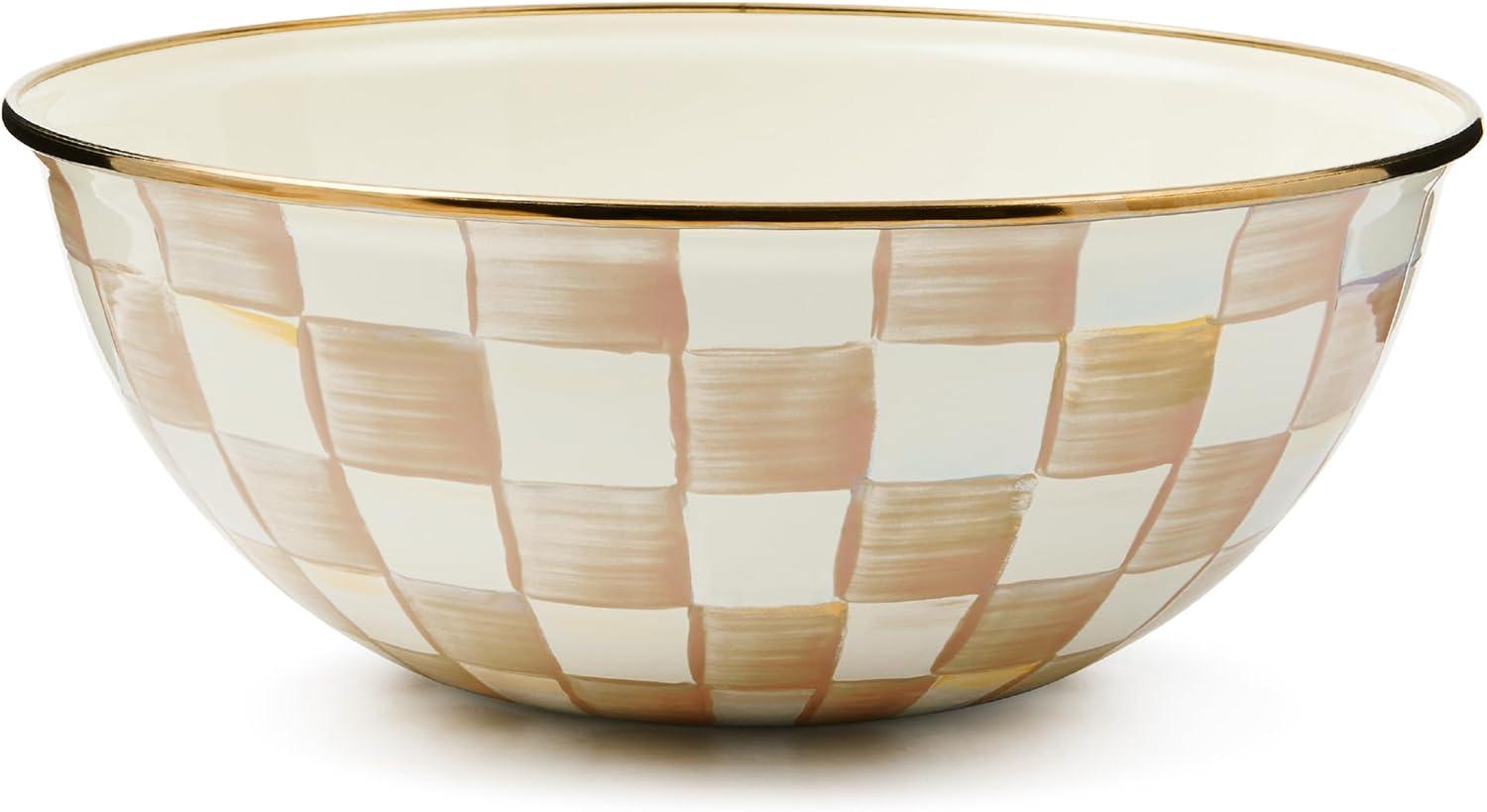 MACKENZIE-CHILDS Enamel Everyday Bowl, Serving Bowl for Entertaining, Extra Small, Brown-and-White Mocha Check(Mocha Check)