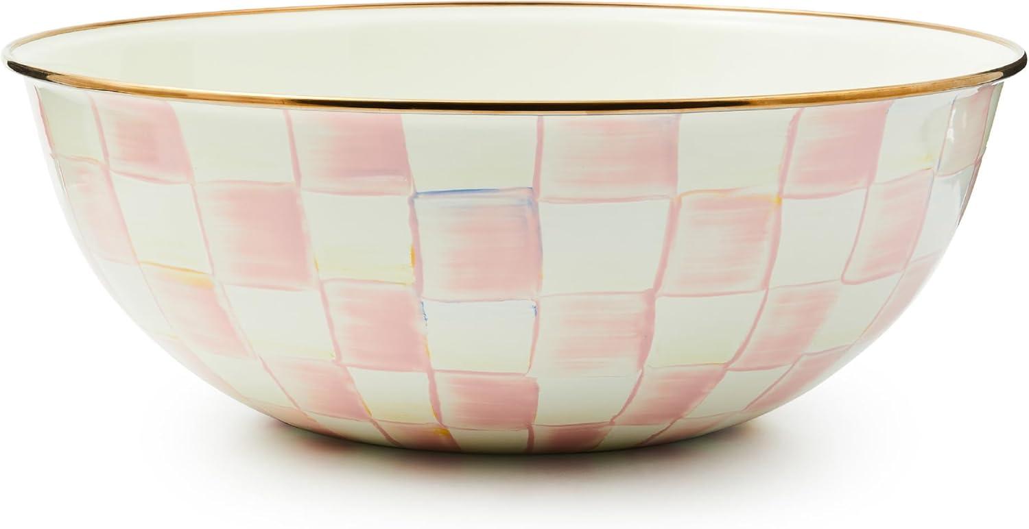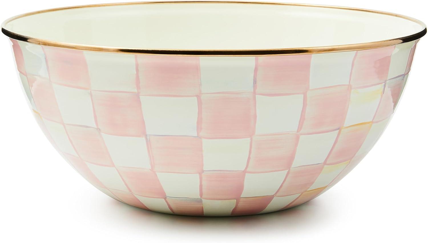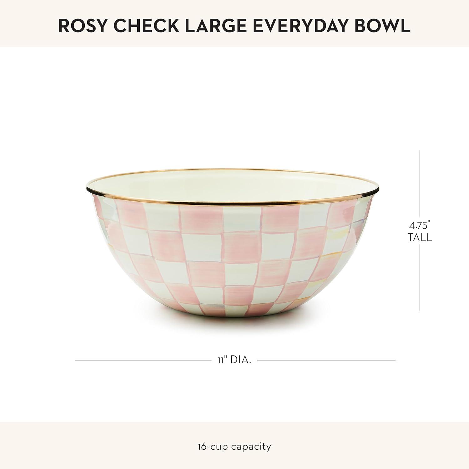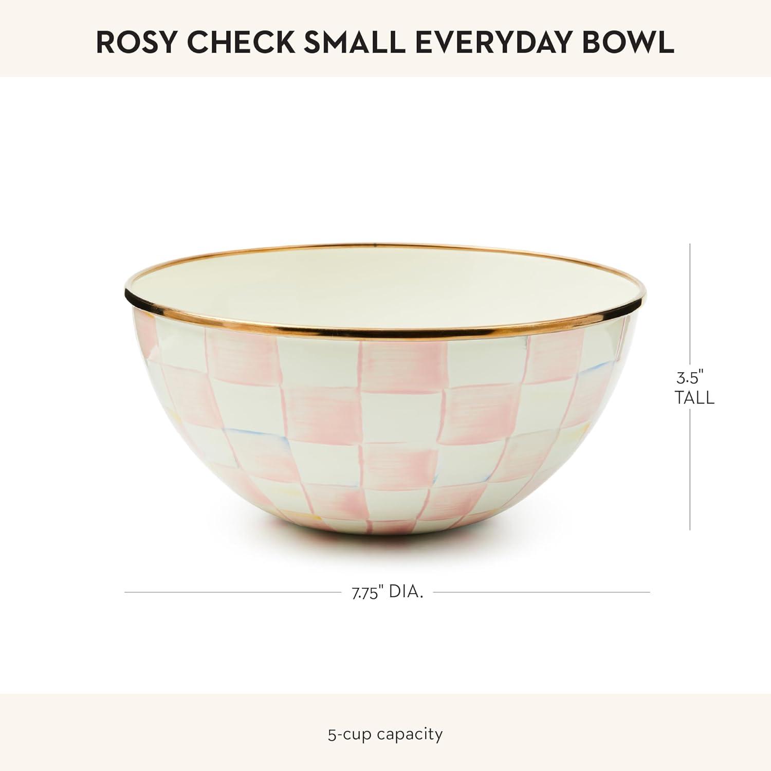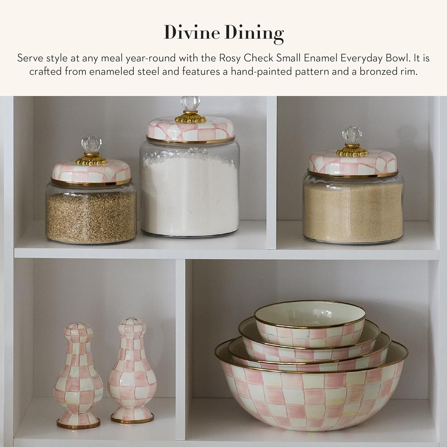 MACKENZIE-CHILDS Enamel Everyday Bowl, Serving Bowl for Entertaining, Extra Small, Brown-and-White Mocha Check(Rosy Check)