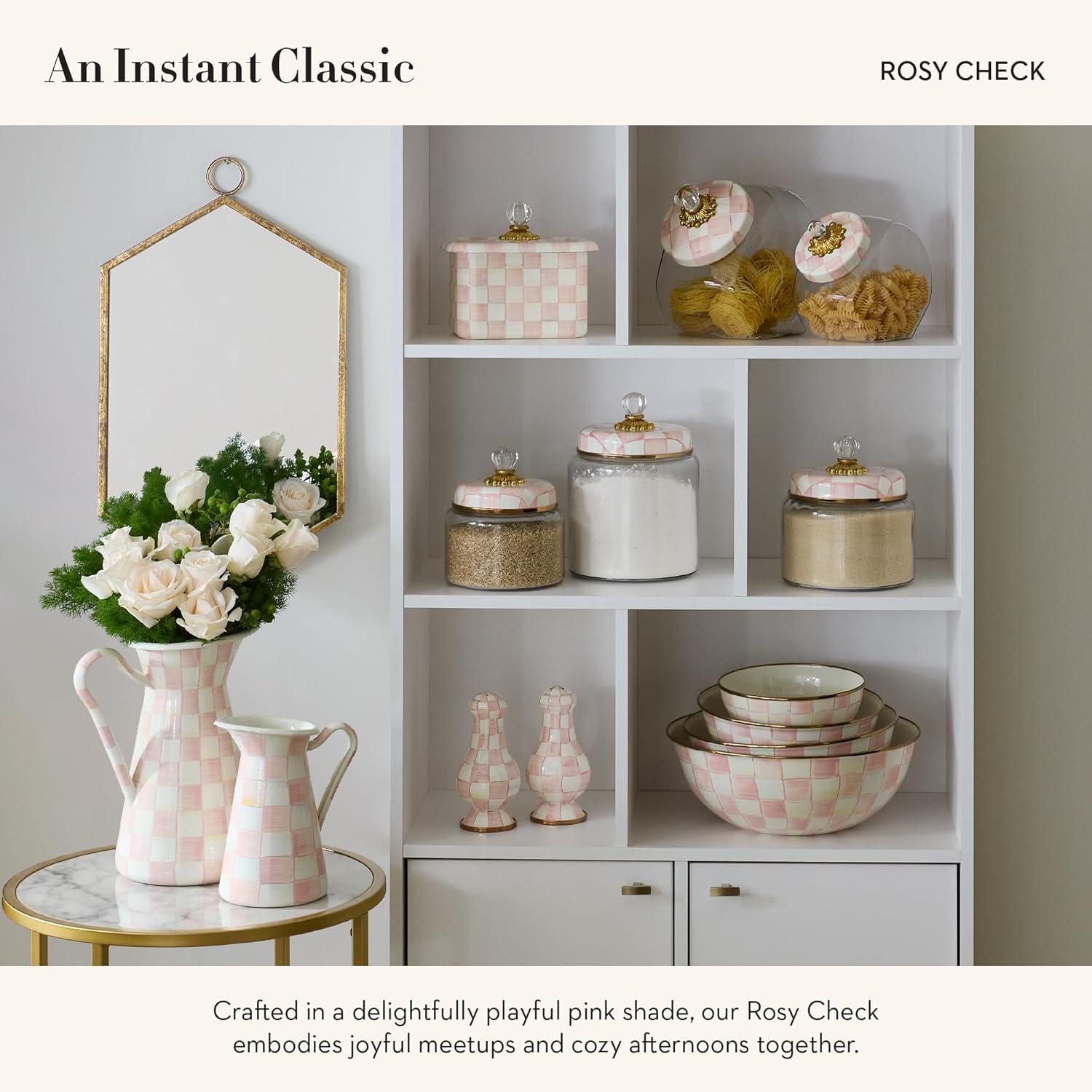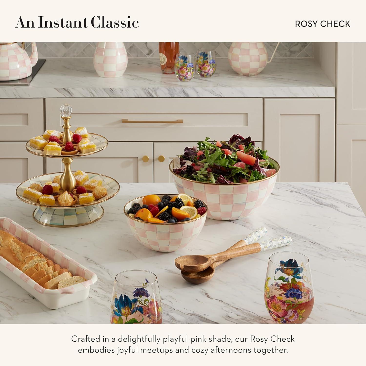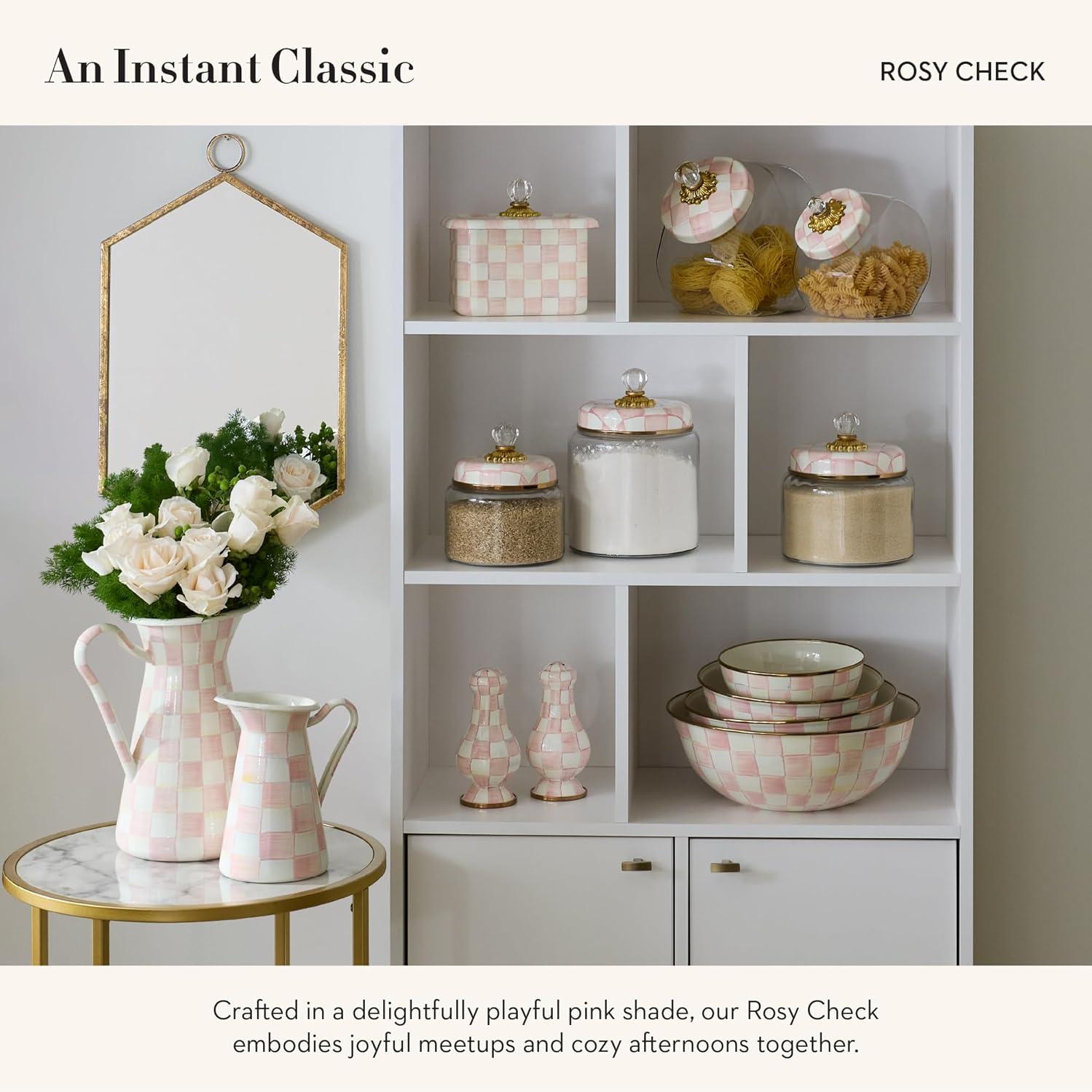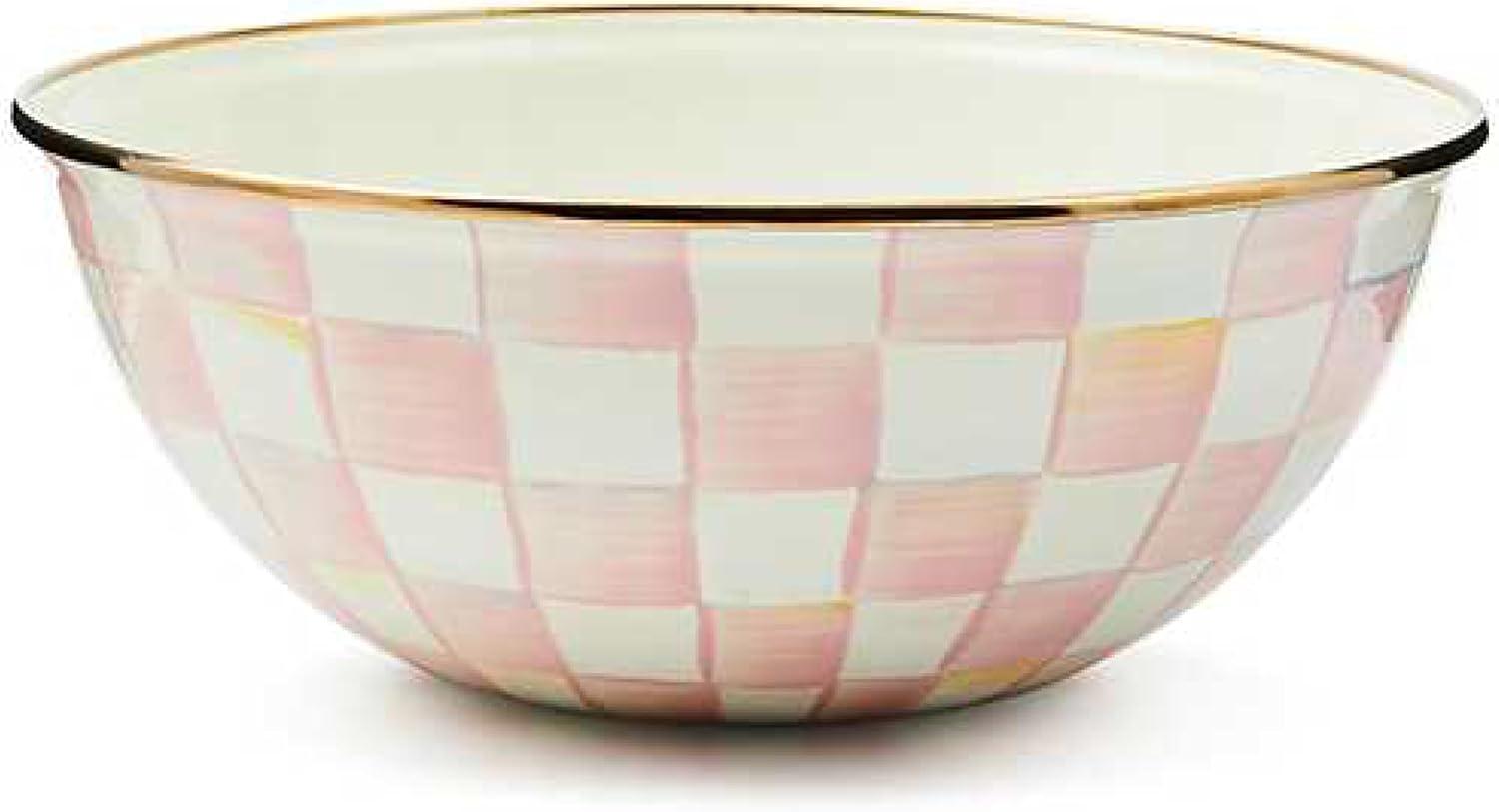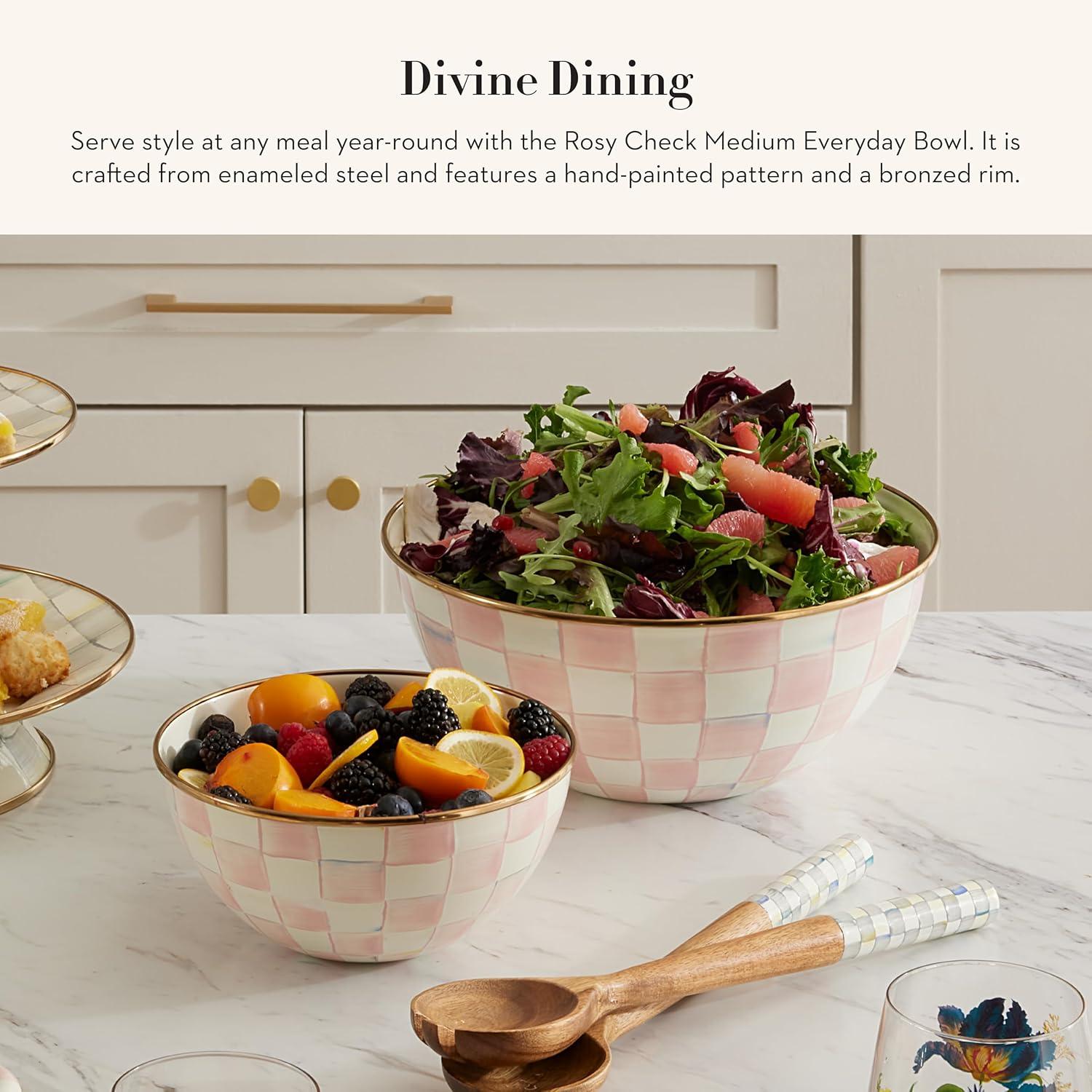 MACKENZIE-CHILDS Enamel Everyday Bowl, Serving Bowl for Entertaining, Extra Small, Brown-and-White Mocha Check(Rosy Check)