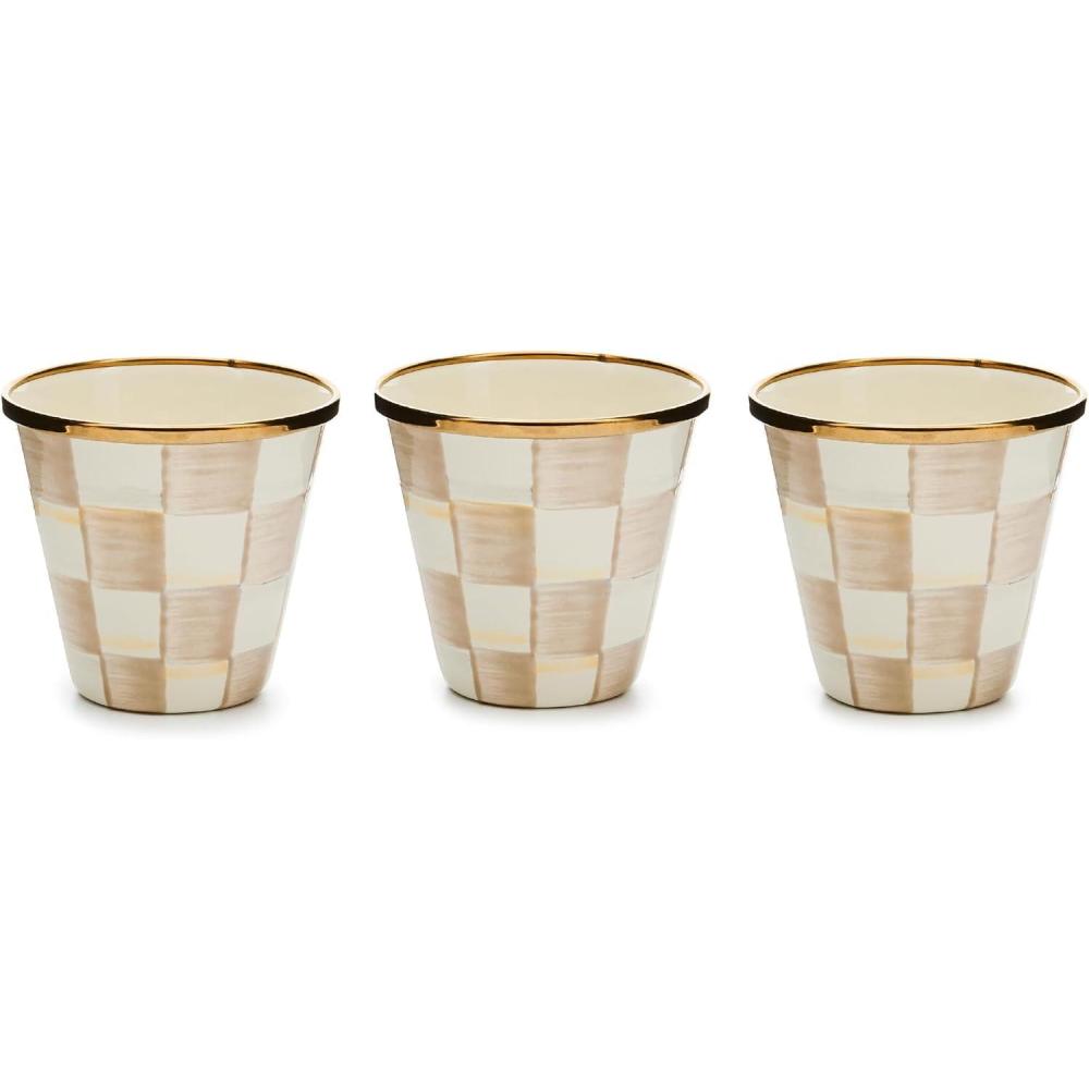 MACKENZIE-CHILDS Enamel Herb Pots, Small Plant Pots for Herbs or Flowers, Set of 3, Brown-and-White Mocha Check(Mocha Check)