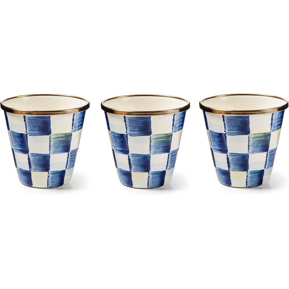 MACKENZIE-CHILDS Enamel Herb Pots, Small Plant Pots for Herbs or Flowers, Set of 3, Brown-and-White Mocha Check(Royal Check)