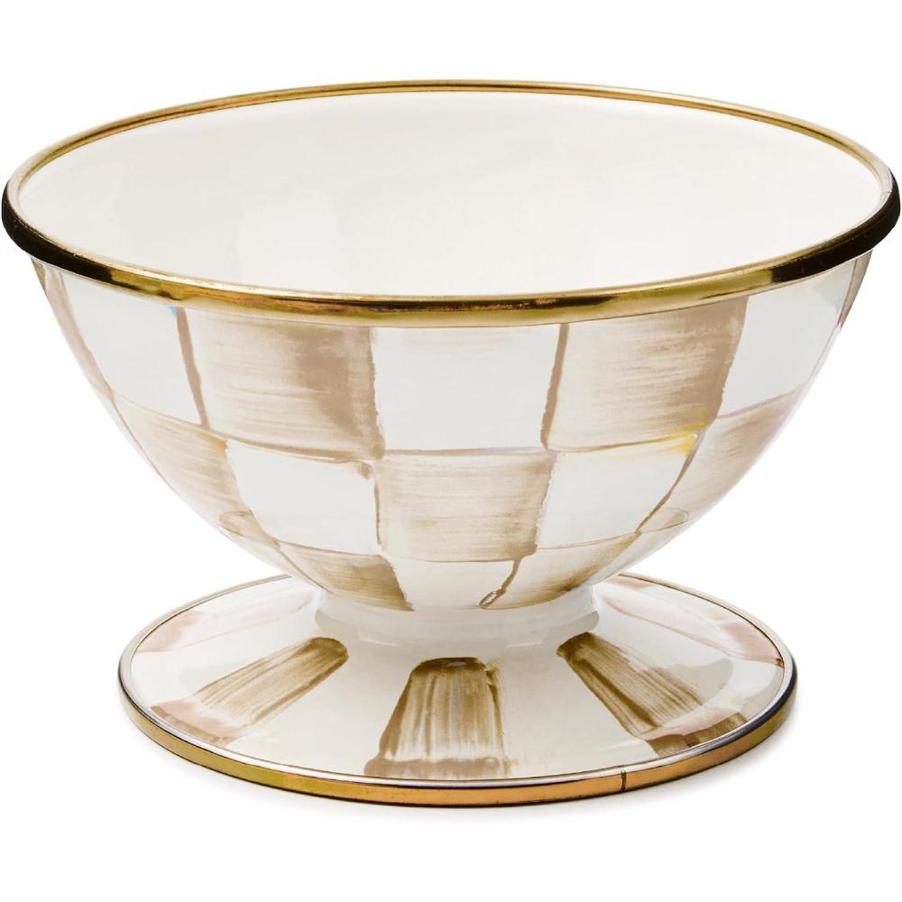 MACKENZIE-CHILDS Enamel Ice Cream Bowl, Serving Bowls for Entertaining, 2-Cup Capacity, Brown-and-White Mocha Check(Mocha Check)