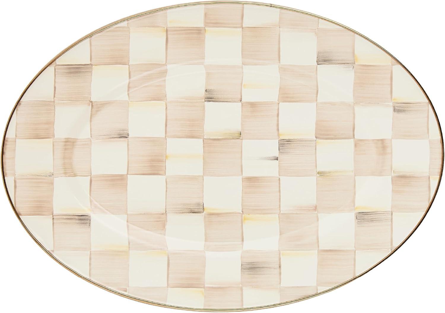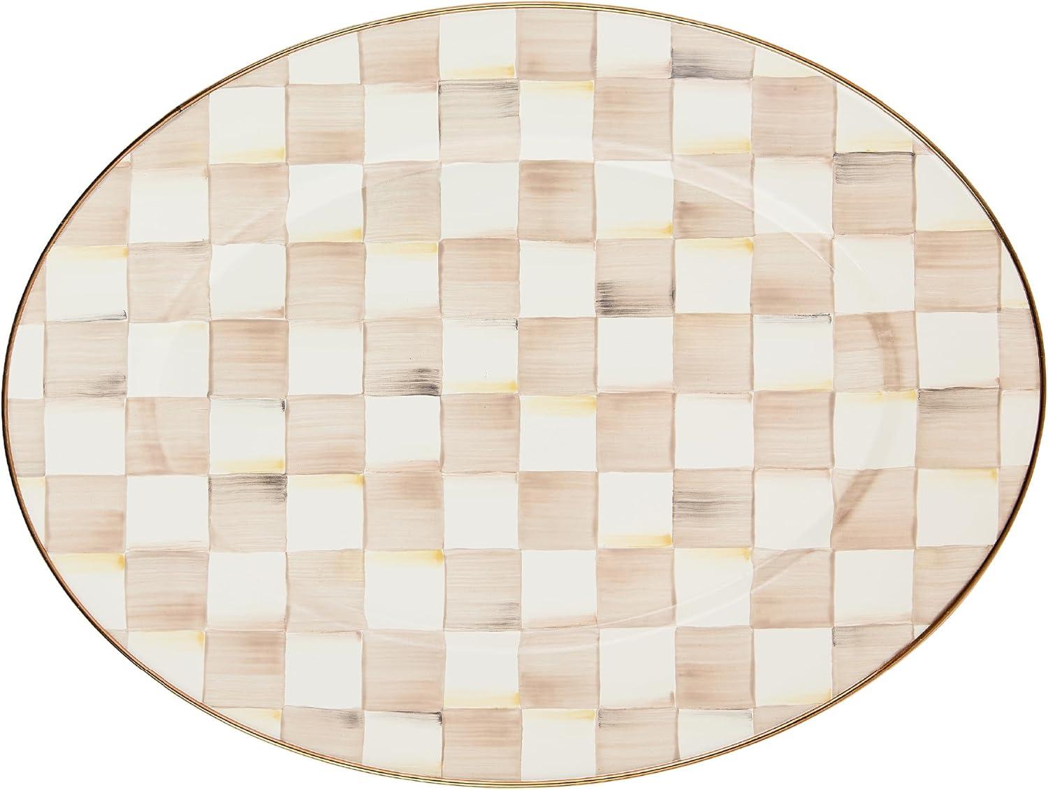 MACKENZIE-CHILDS Enamel Oval Platter, Serving Plate for Entertaining, Large, Black-and-White Courtly Check(Mocha Check)
