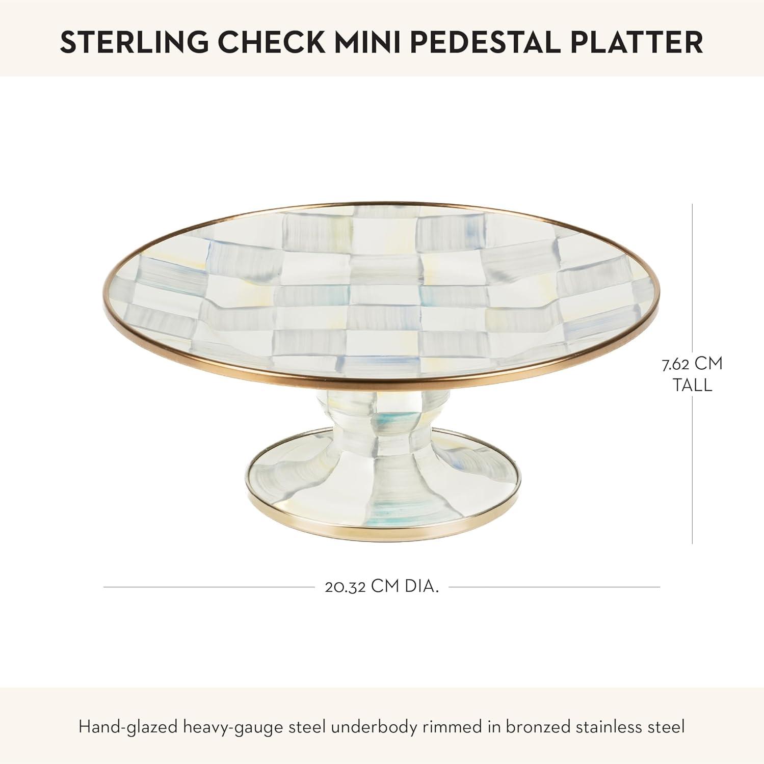 MACKENZIE-CHILDS Enamel Pedestal Platter, Round Cake Stand, Small, Gray-and-White Sterling Check(Sterling Check)