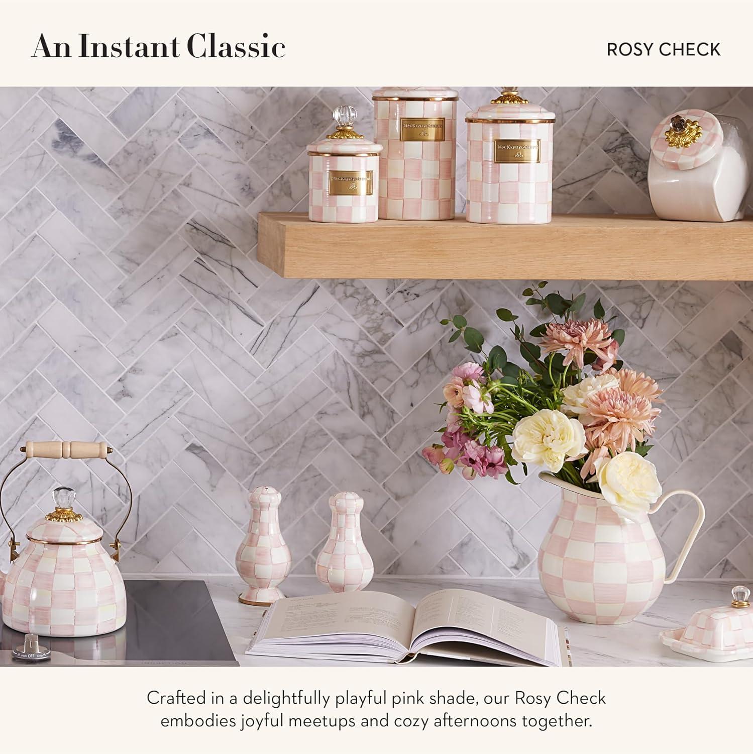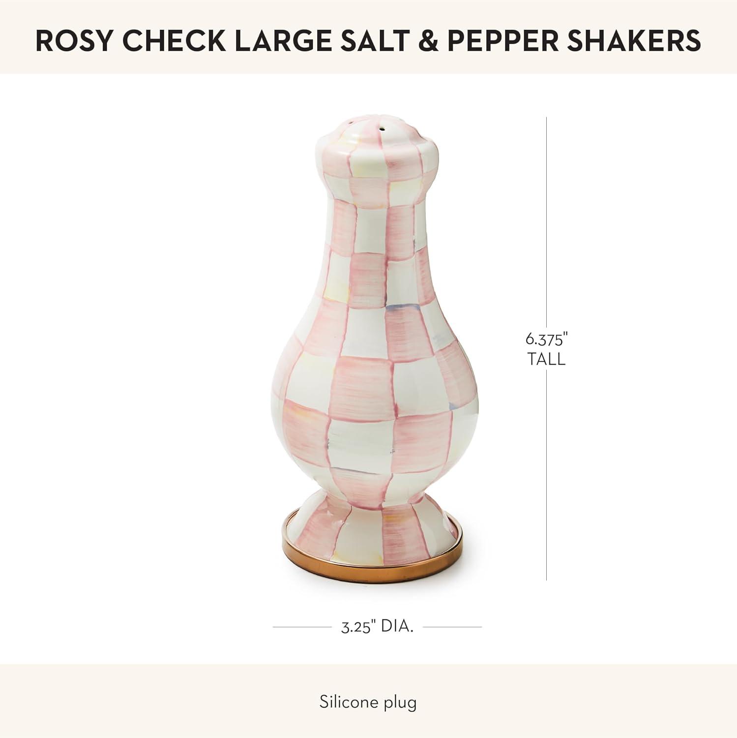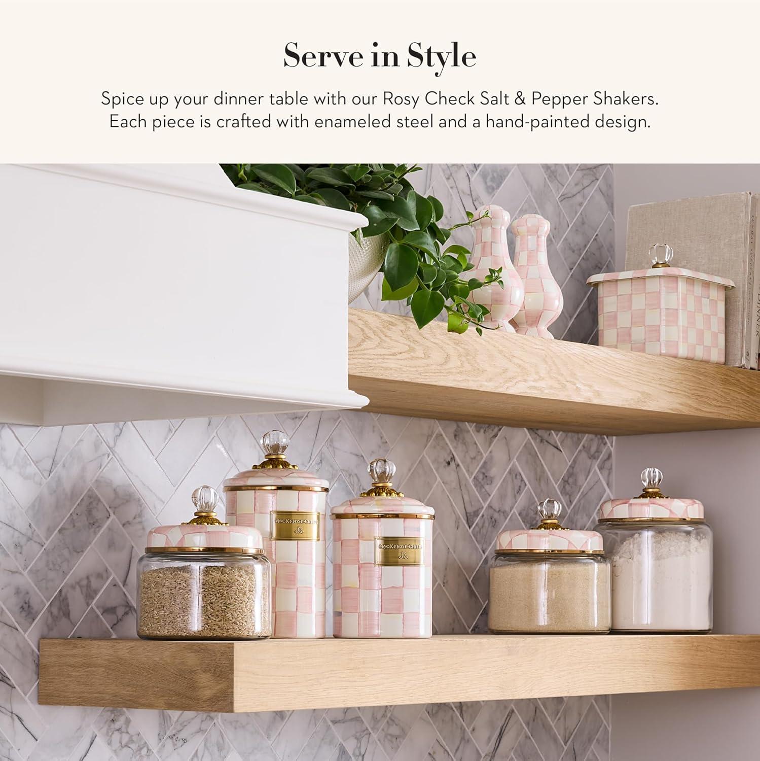 MACKENZIE-CHILDS Enamel Salt and Pepper Shakers, Kitchen Table Spice Shaker Set, Gray-and-White Sterling Check, Large(Rosy Check)