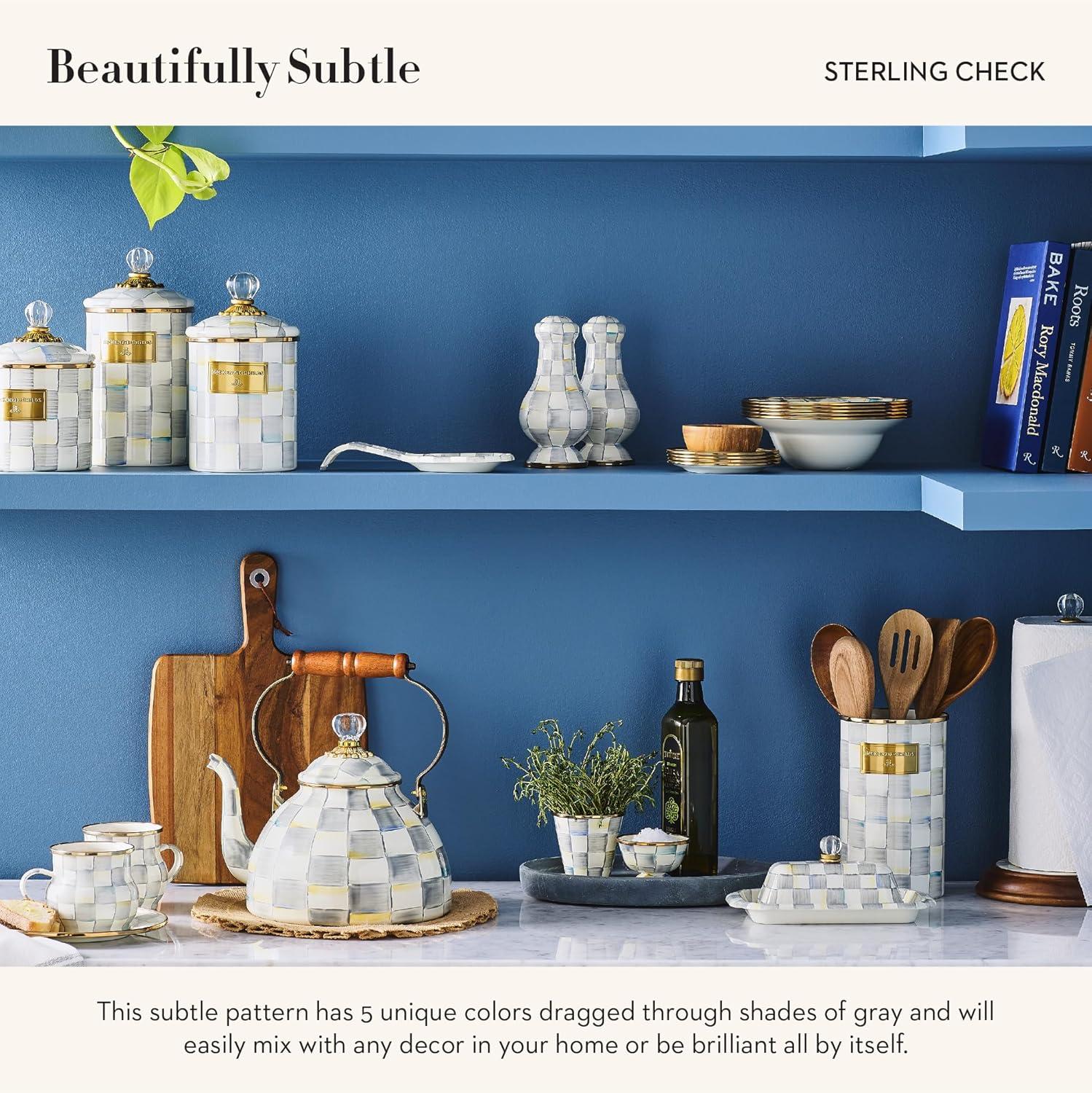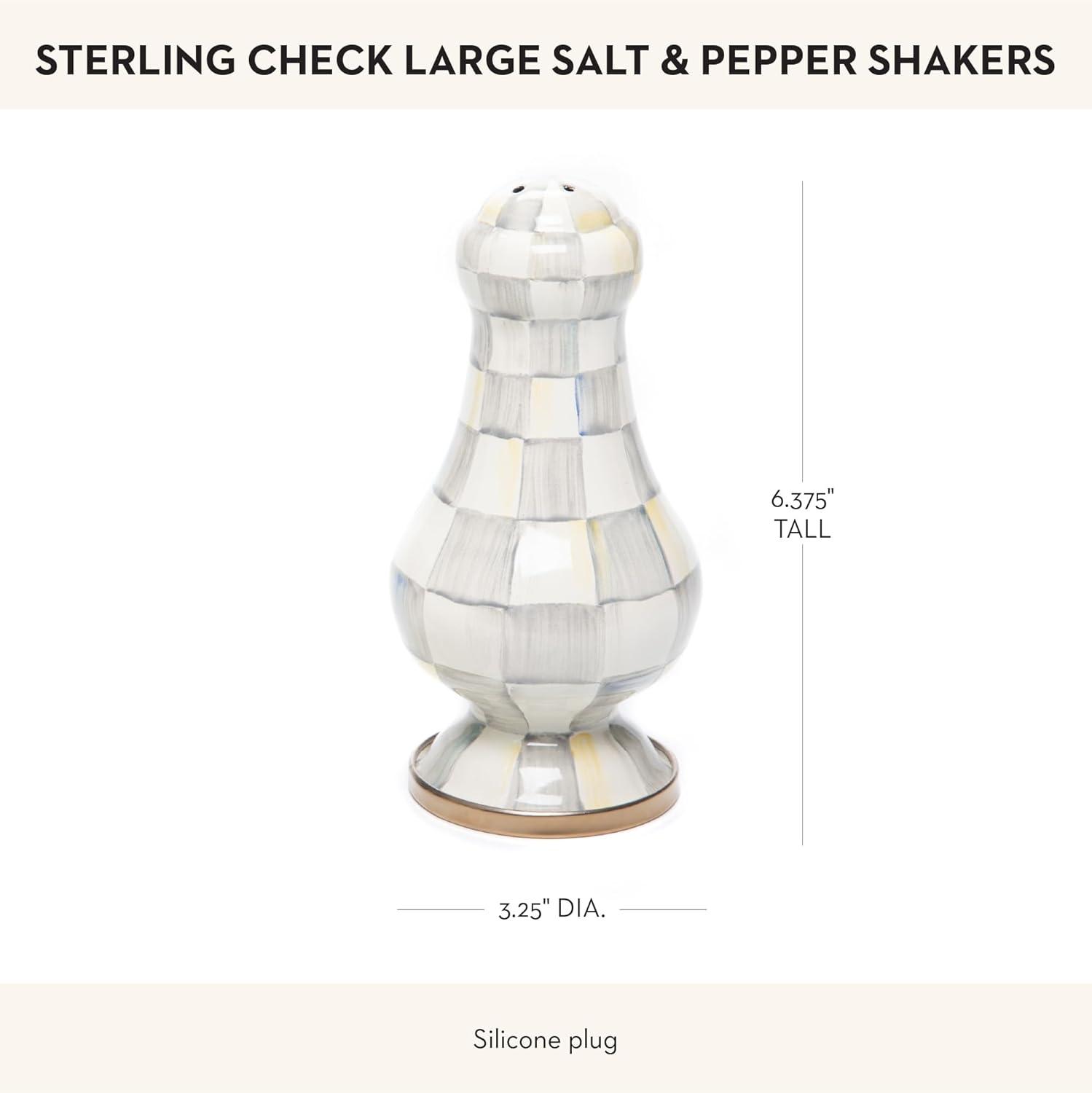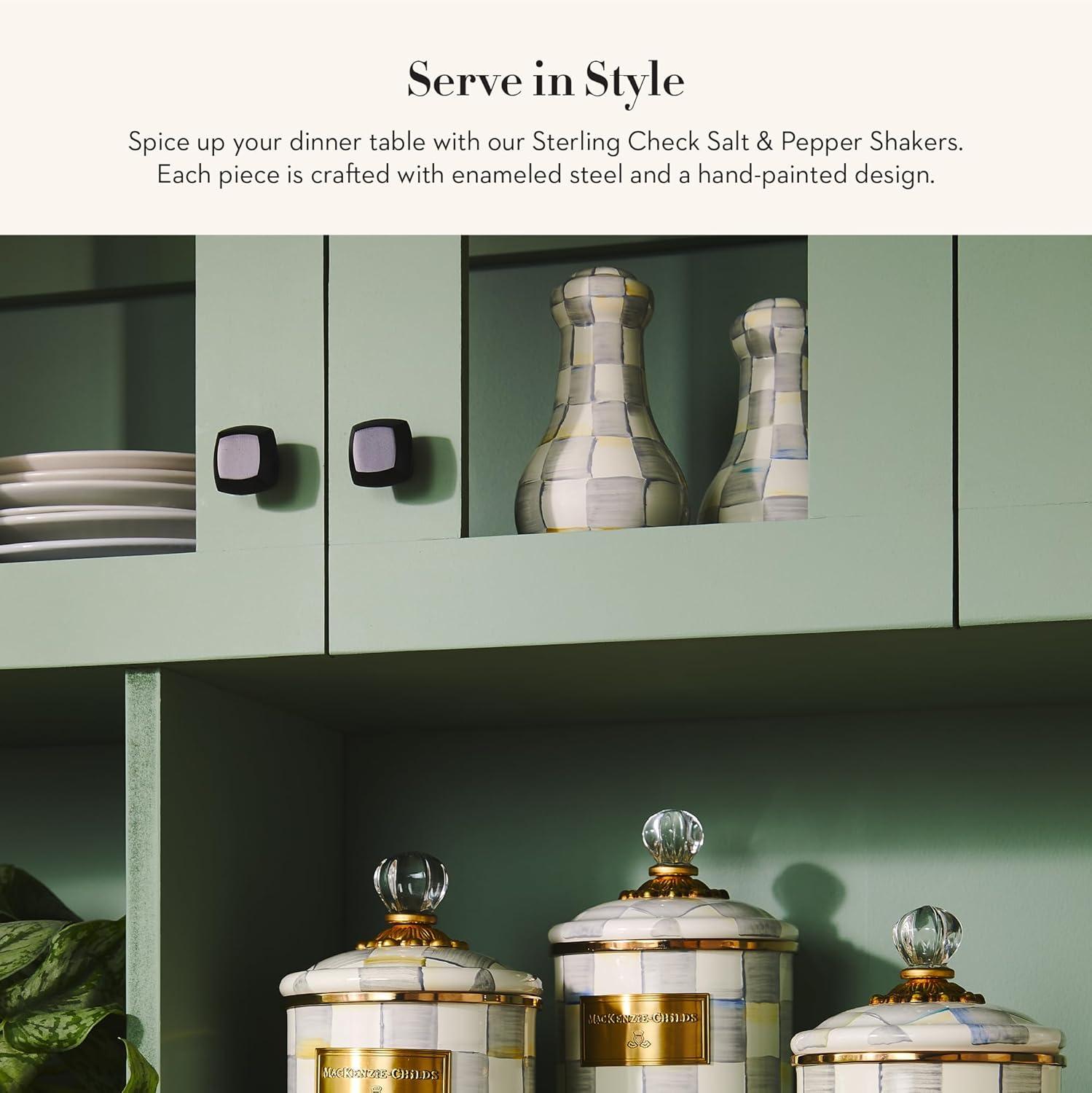 MACKENZIE-CHILDS Enamel Salt and Pepper Shakers, Kitchen Table Spice Shaker Set, Gray-and-White Sterling Check, Large(Sterling Check)