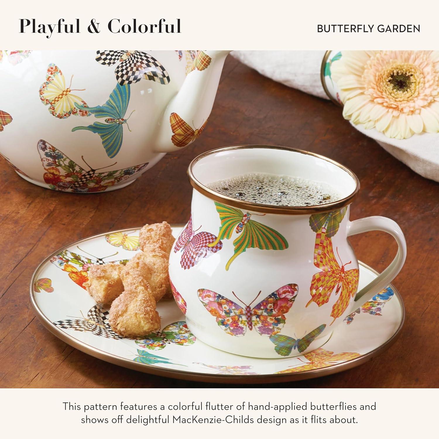 MACKENZIE-CHILDS Enamel Tea Kettle, Cute Kitchen Kettle for Stovetop, 2-Quart Capacity, Butterfly Garden(Butterfly Garden)