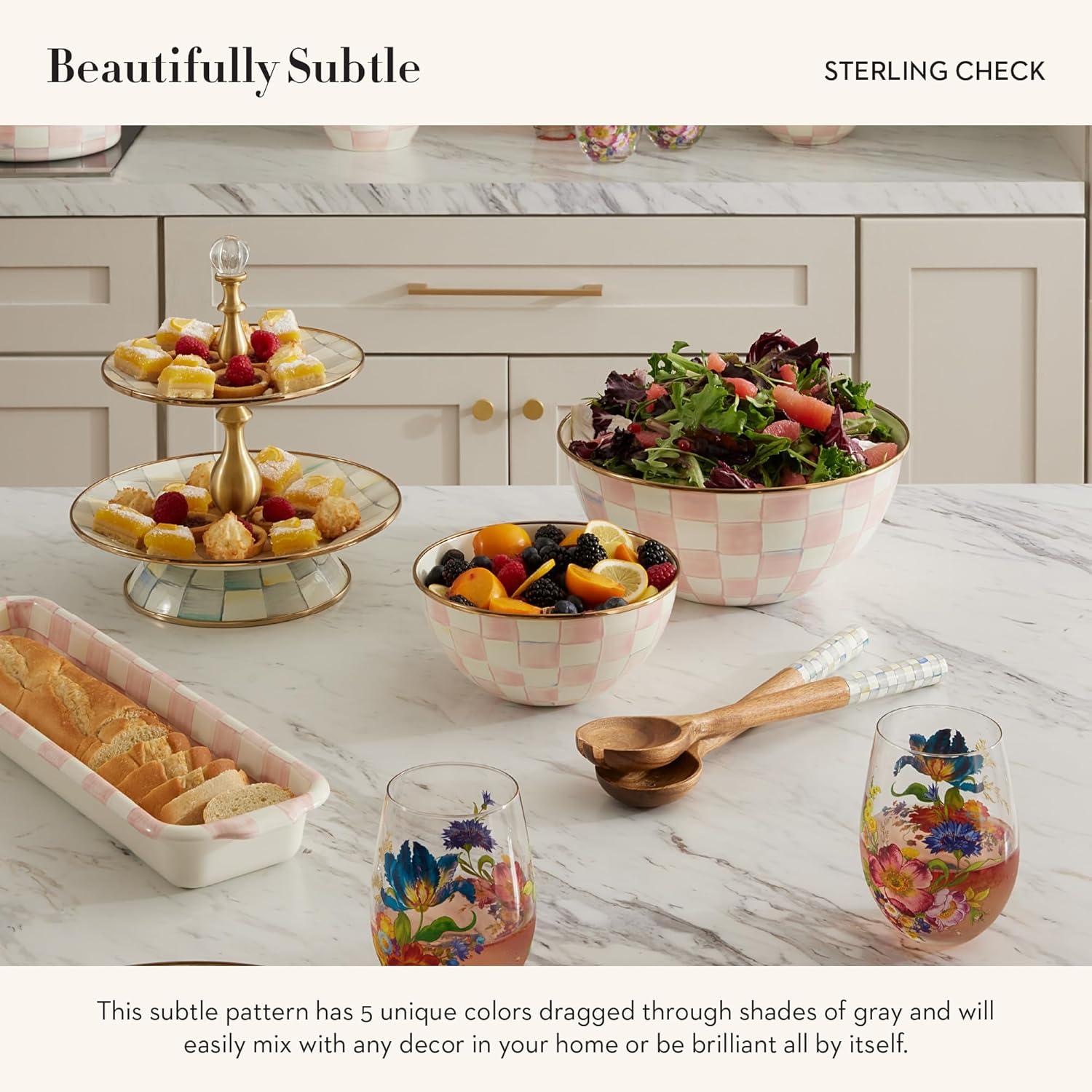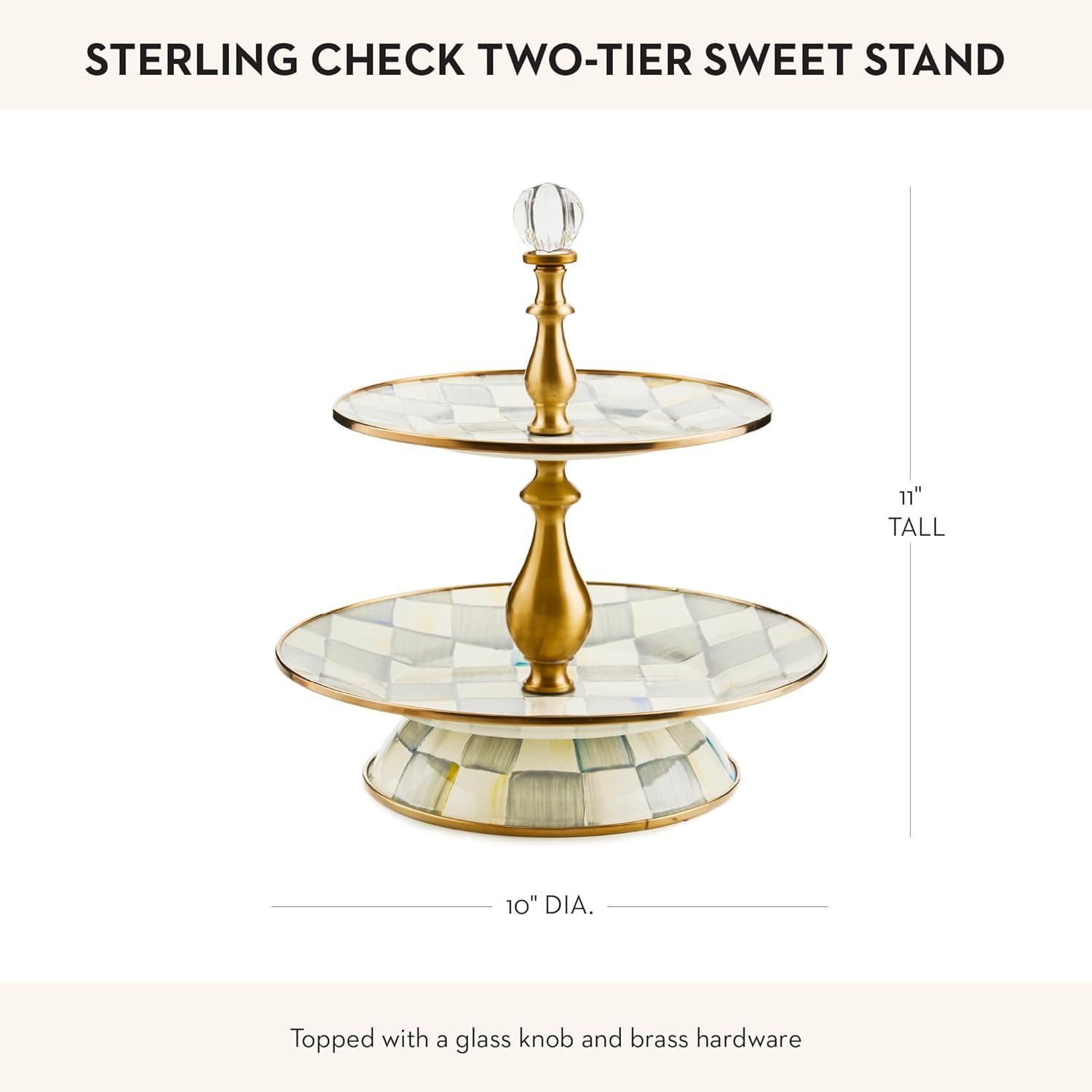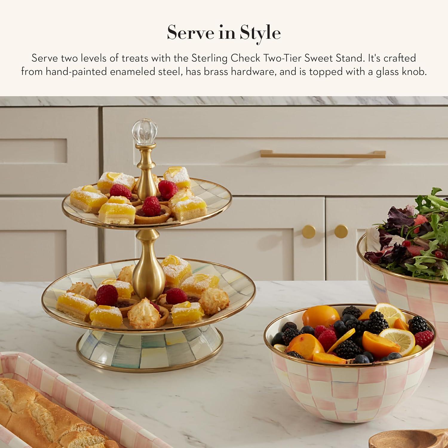 MACKENZIE-CHILDS Enamel Three-Tier Sweet Stand, Three-Tiered Serving-Tray Stand, Party Food Display, Black-and-White Courtly Check(Sterling Check)
