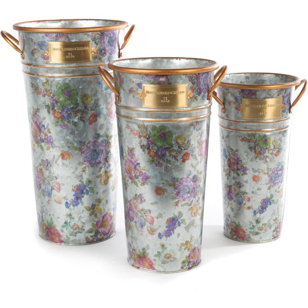 MACKENZIE-CHILDS Galvanized Flower Buckets, Decorative Metal Buckets, Spectator, Set of 3(Assorted)