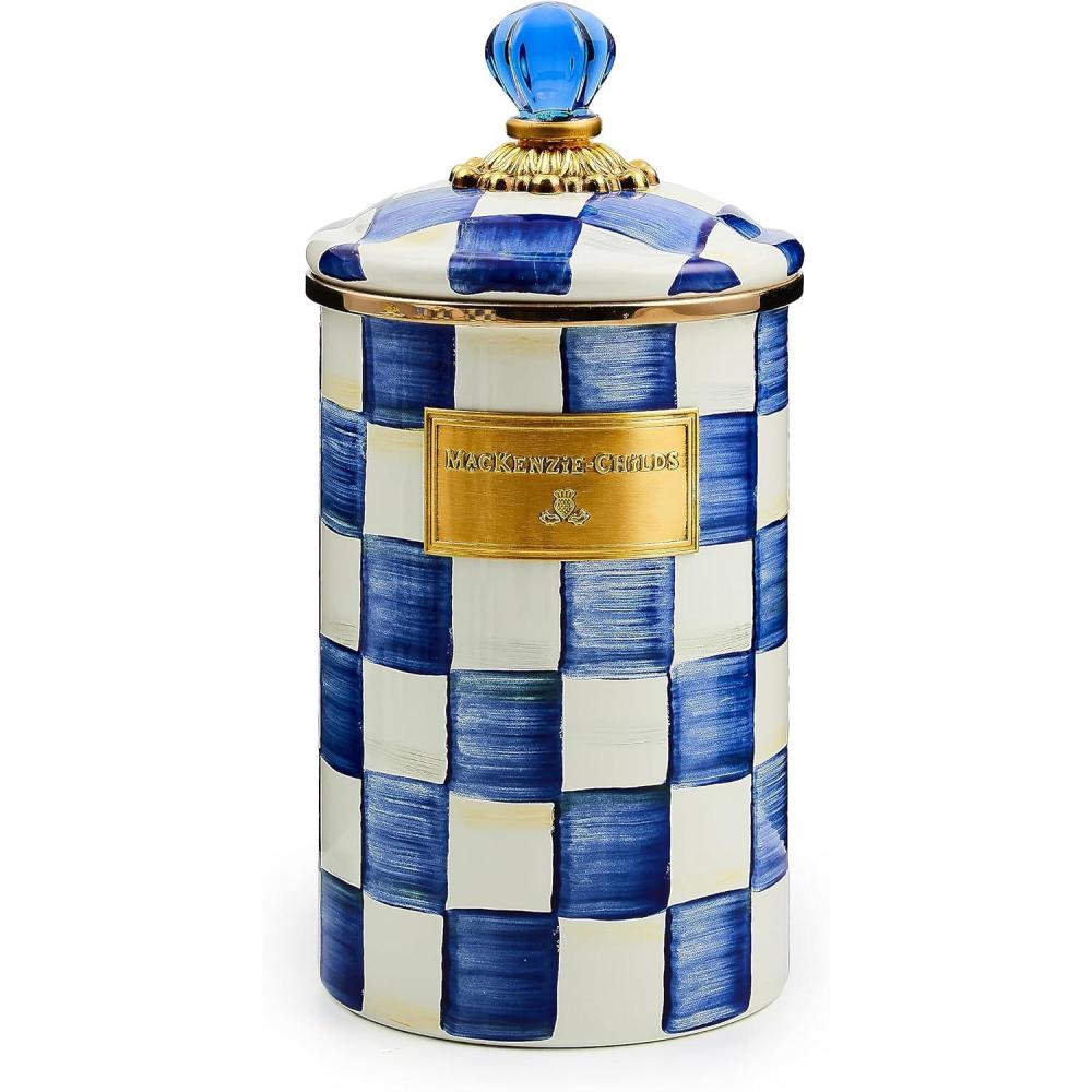 MACKENZIE-CHILDS Large Enamel Canister, Kitchen Storage Container for Flour and Sugar, 1.89 Liters, Grey-and-White Sterling Check(Royal Check)