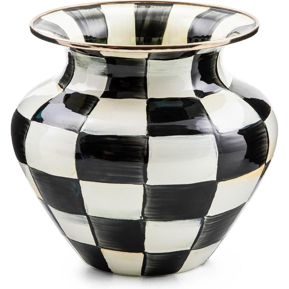 MACKENZIE-CHILDS Large Enamel Vase, Unique Flower-Vase Decor for Living Room, Black-and-White Courtly Check(Courtly Check)