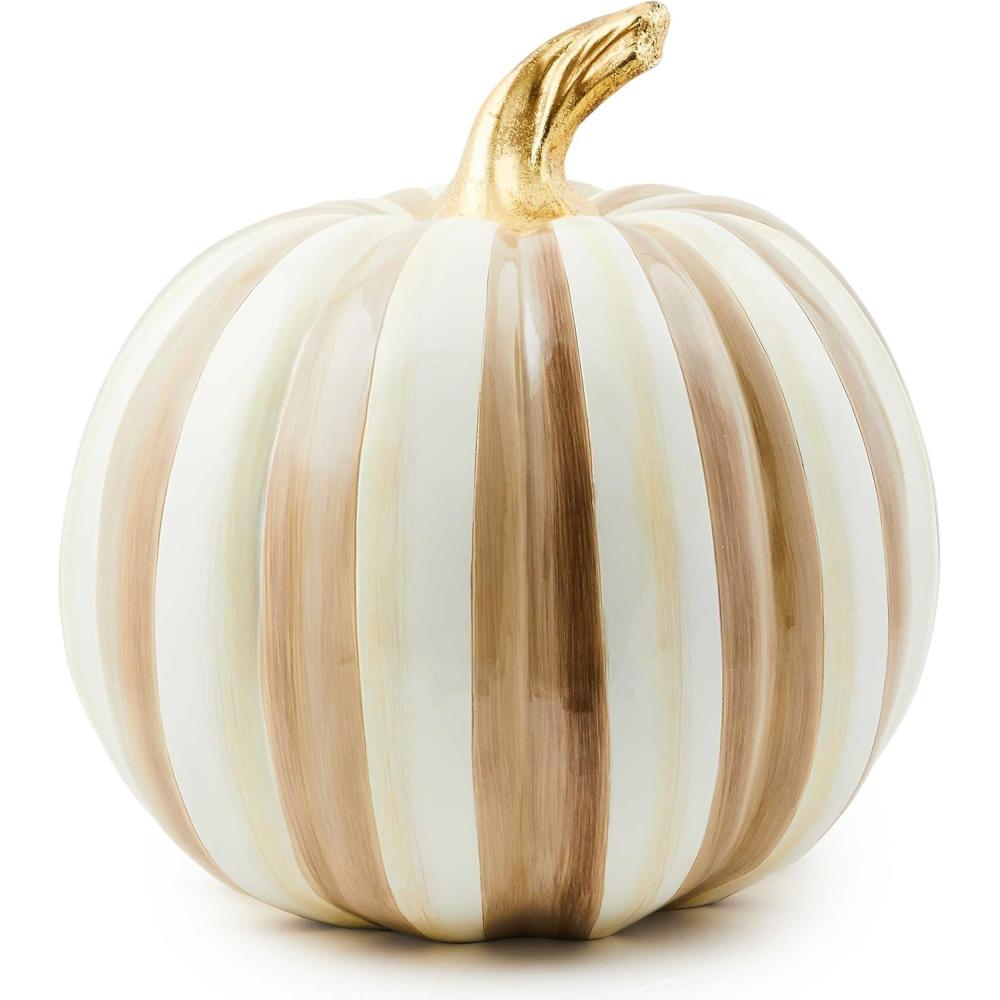 MACKENZIE-CHILDS Medium Pumpkin, Resin Halloween Home Decor, Pink-and-White Bubblegum Pink Stripe(Mocha)