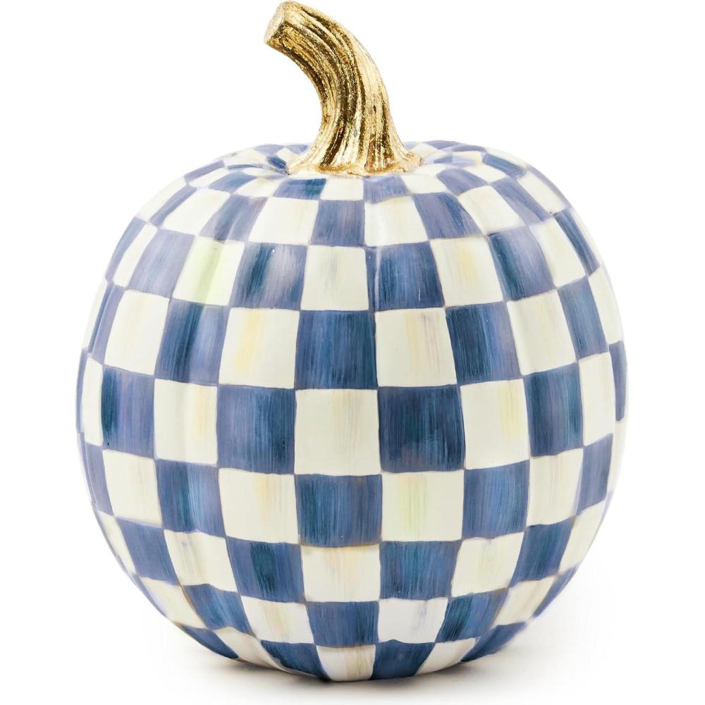 MACKENZIE-CHILDS Mini Pumpkin, Resin Halloween Home Decor, Purple-and-White Plum Check(Royal Check)