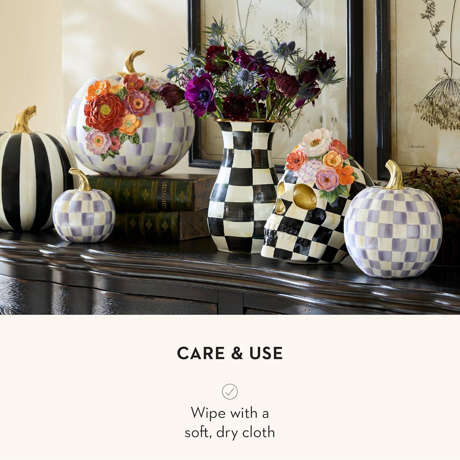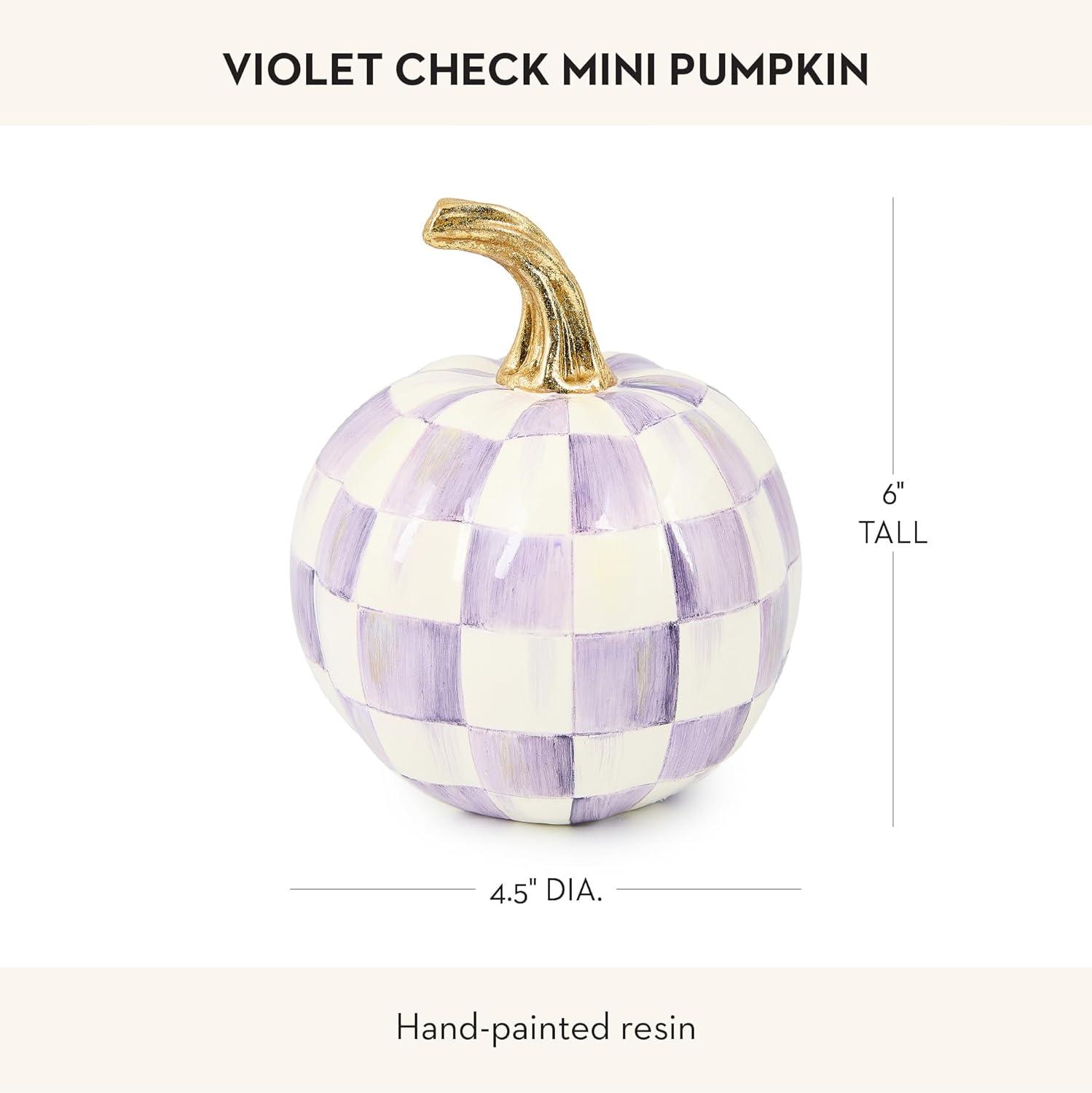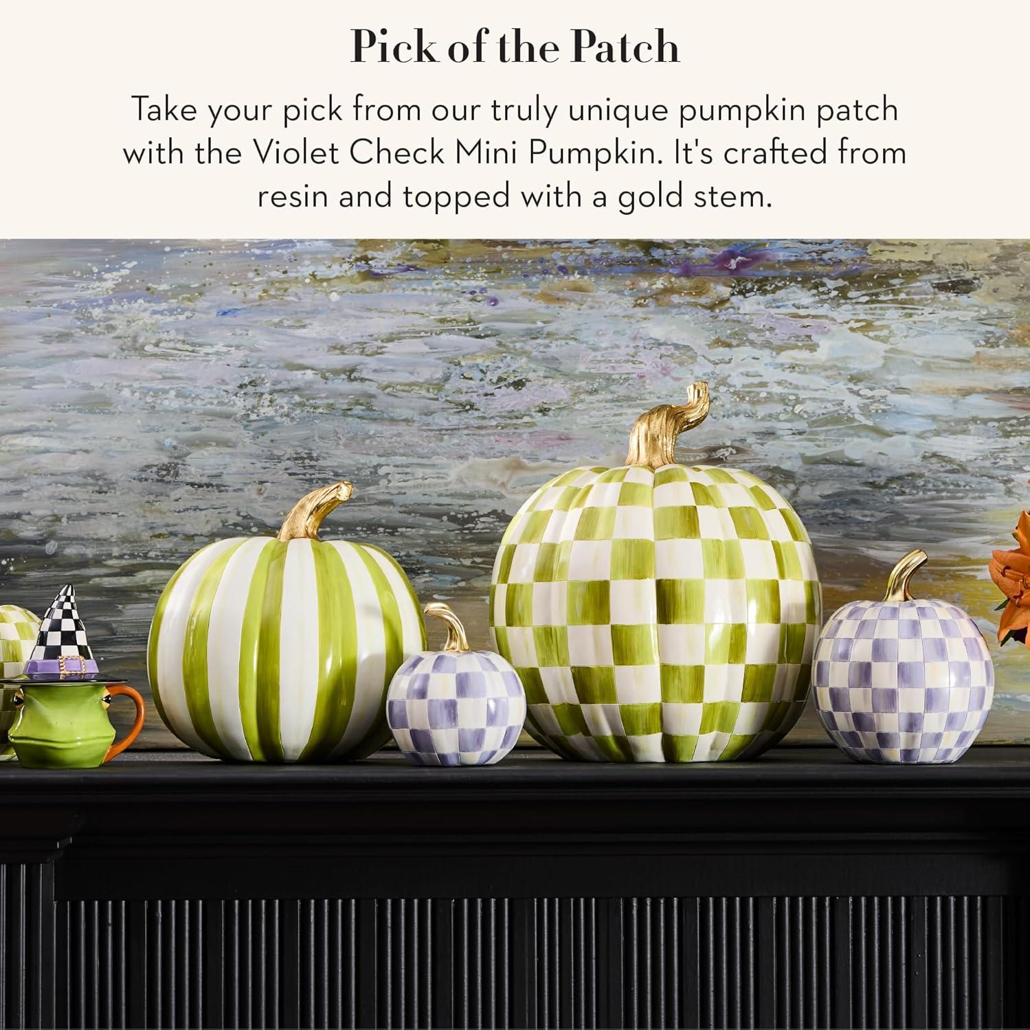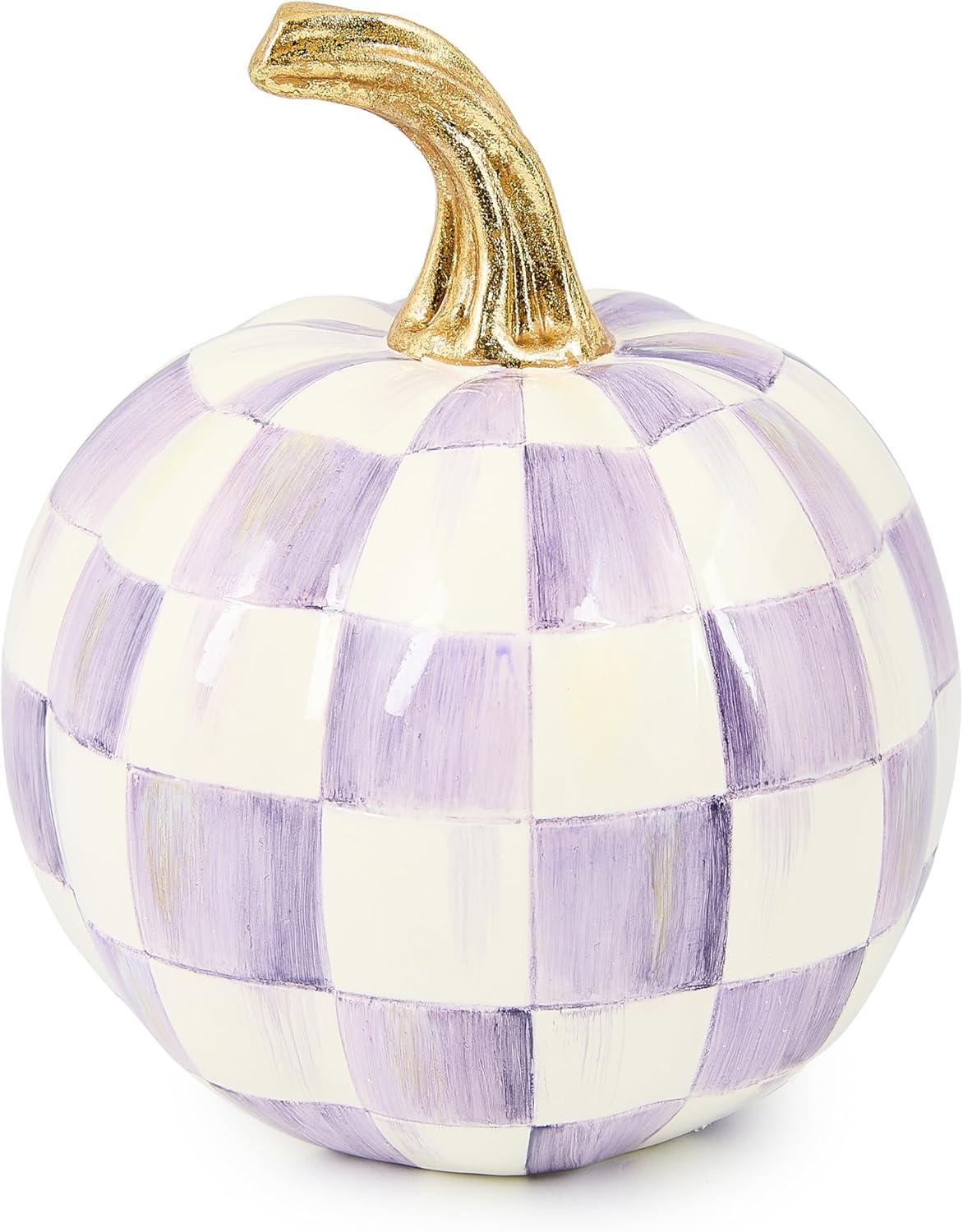 MACKENZIE-CHILDS Mini Pumpkin, Resin Halloween Home Decor, Purple-and-White Plum Check(Violet Check)