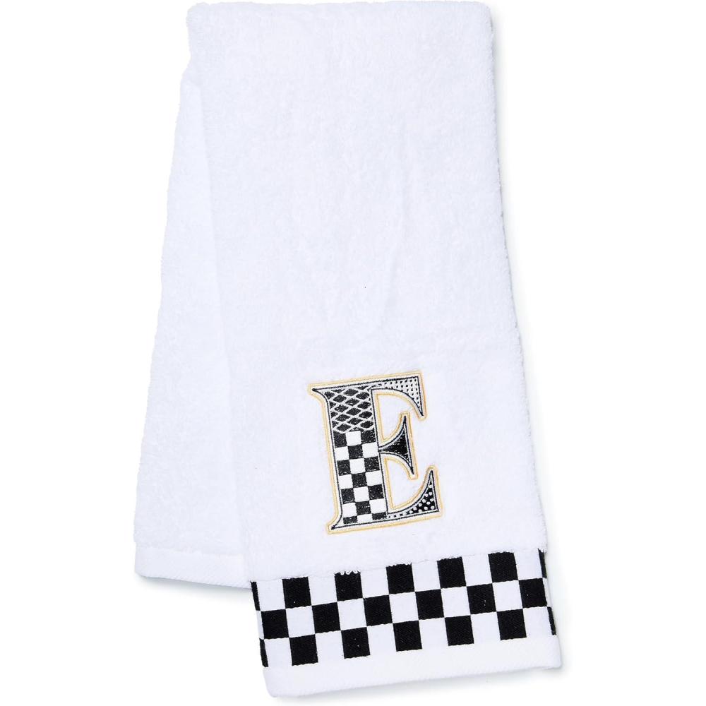ELEGANT WASHROOM DECOR: Our monogrammed towel features a letter of the alphabet filled with our signature black-and-white patterns above a checkered border. This accent makes any restroom or guest bath feel like a luxury space in an instant.