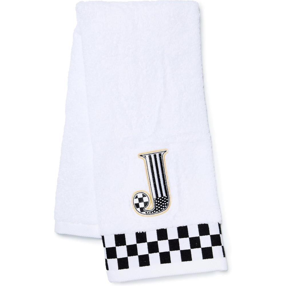 MACKENZIE-CHILDS Monogram Cotton Hand Towel, Cute Black-and-White Decorative Monogrammed Hand Towel for Bathroom or Kitchen, J(J)