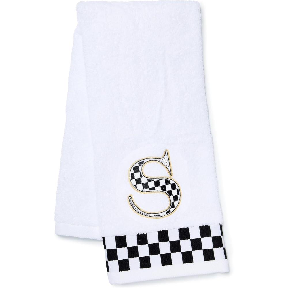 ELEGANT WASHROOM DECOR: Our monogrammed towel features a letter of the alphabet filled with our signature black-and-white patterns above a checkered border. This accent makes any restroom or guest bath feel like a luxury space in an instant.