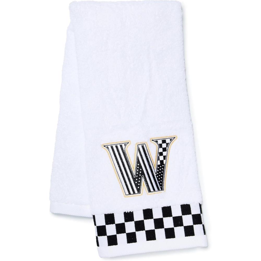 ELEGANT WASHROOM DECOR: Our monogrammed towel features a letter of the alphabet filled with our signature black-and-white patterns above a checkered border. This accent makes any restroom or guest bath feel like a luxury space in an instant.
