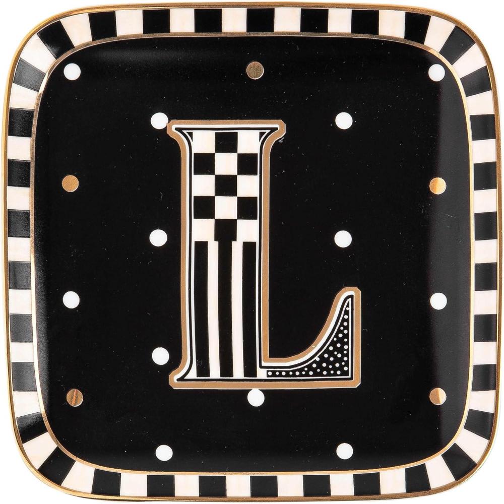 MACKENZIE-CHILDS Monogram Dish, Decorative Ceramic Letter Plate, 5 3/4″ Square, A(Monogram Dish – L)