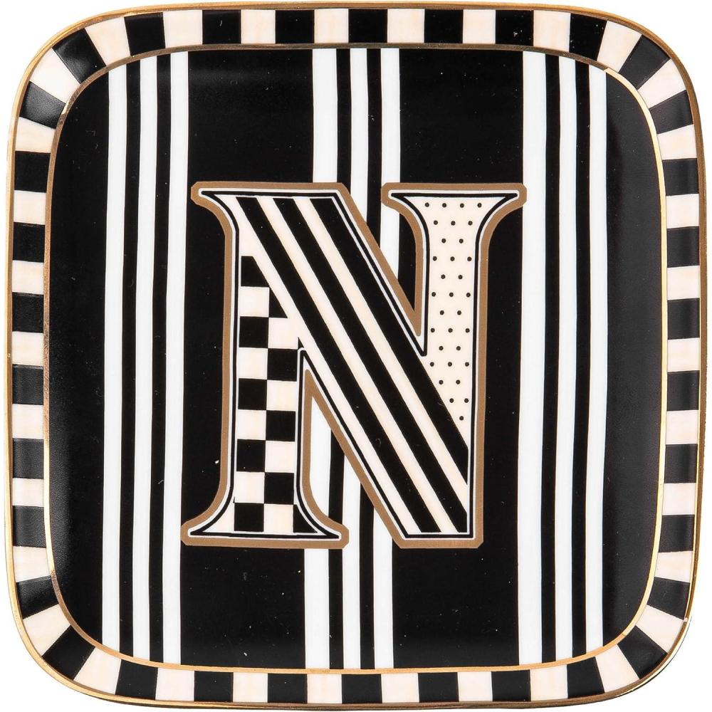 MACKENZIE-CHILDS Monogram Dish, Decorative Ceramic Letter Plate, 5 3/4″ Square, A(Monogram Dish – N)