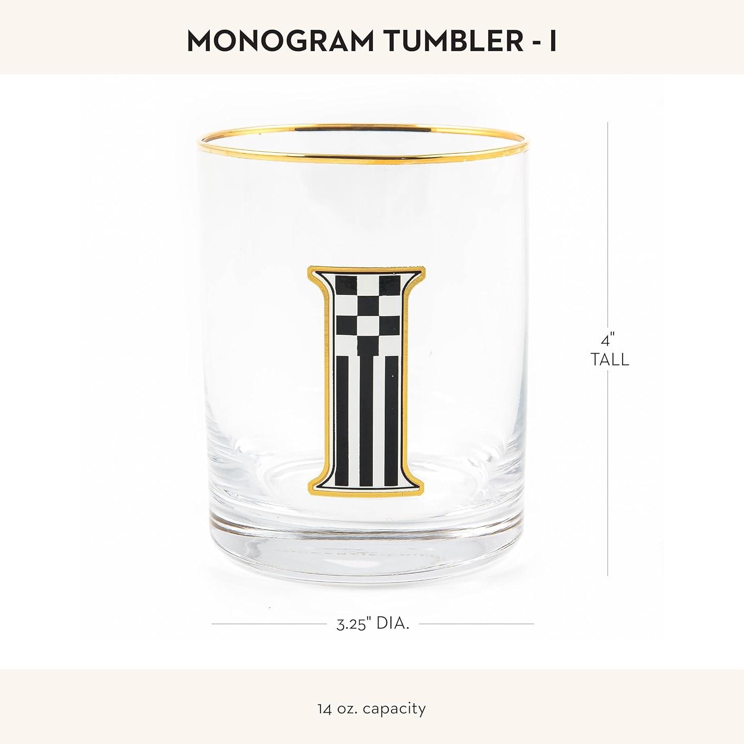 MACKENZIE-CHILDS Monogram Tumbler, Glass Tumbler with Letter, 14 Ounces, J(I)
