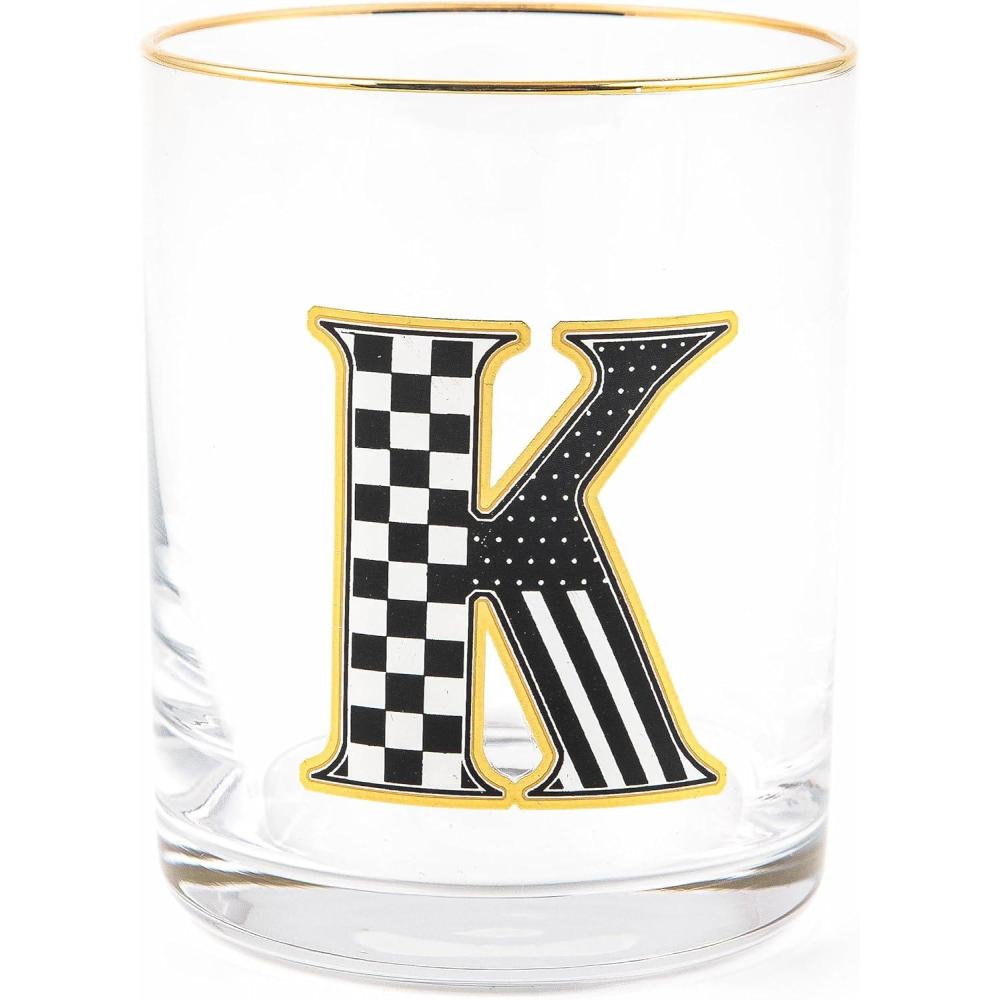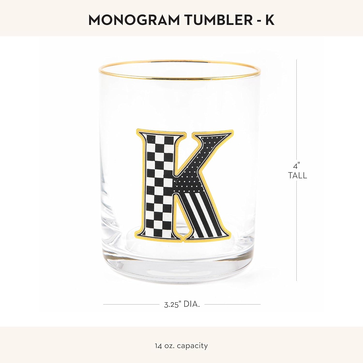 MACKENZIE-CHILDS Monogram Tumbler, Glass Tumbler with Letter, 14 Ounces, J(K)