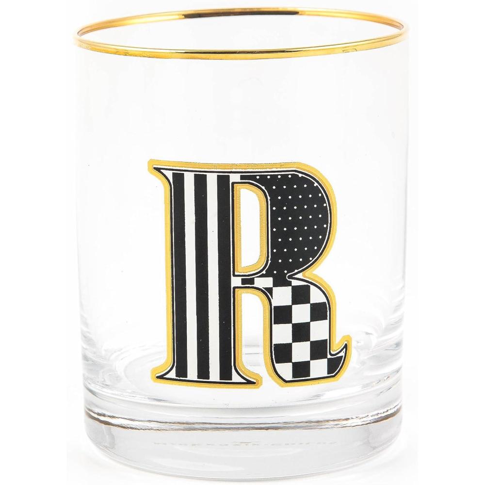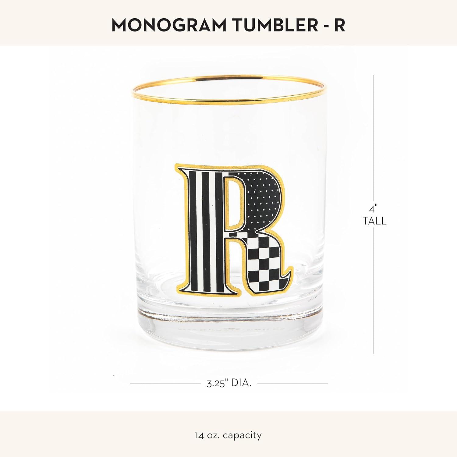 MACKENZIE-CHILDS Monogram Tumbler, Glass Tumbler with Letter, 14 Ounces, J(R)