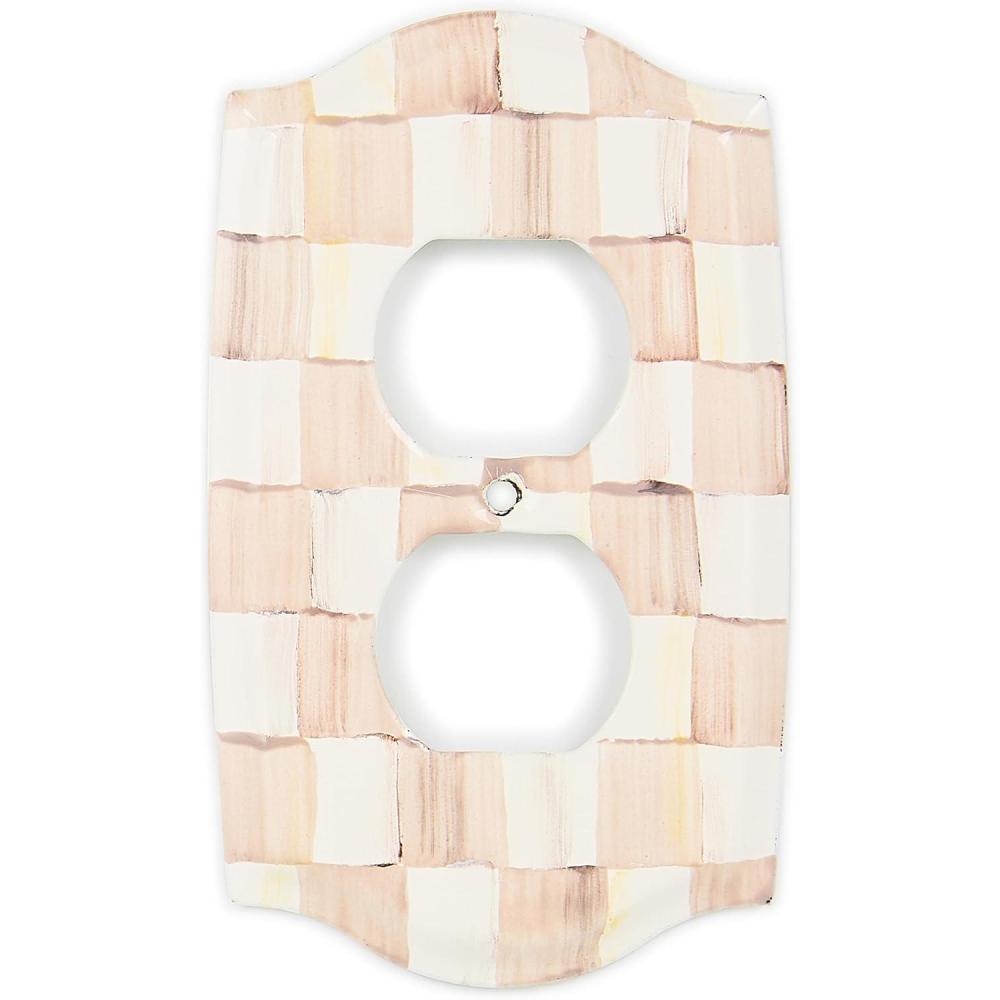 ELEGANT WALL PLATE: Who said outlet covers have to be boring? This stylish outlet wall plate features our classic hand-painted, color-dragged Courtly Check pattern over a heavy-gauge steel underbody with antique brass-plated hardware.