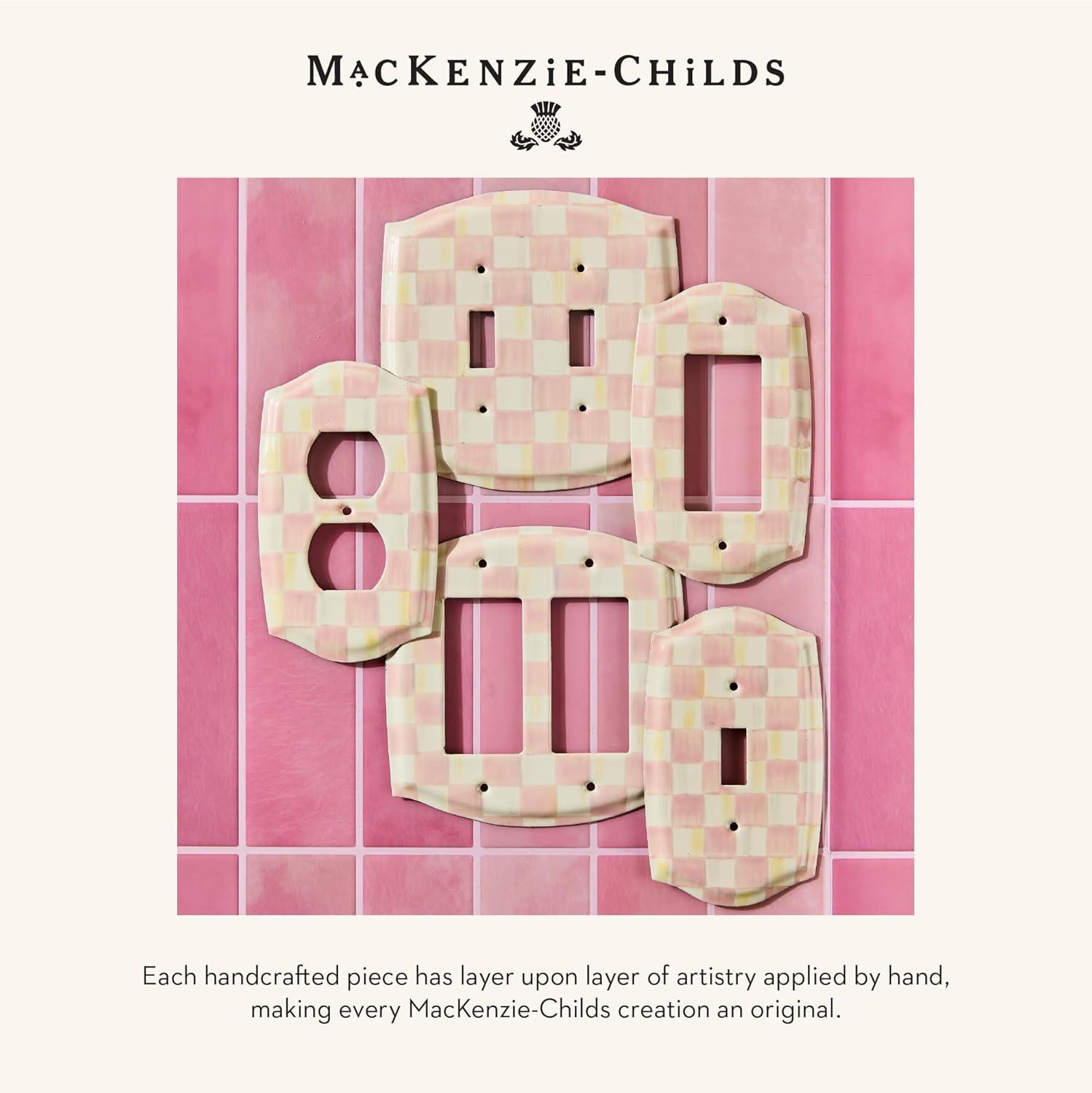 MACKENZIE-CHILDS Outlet Cover, Decorative Double-Outlet Cover Plate, Black-and-White Courtly Check(Rosy Check)