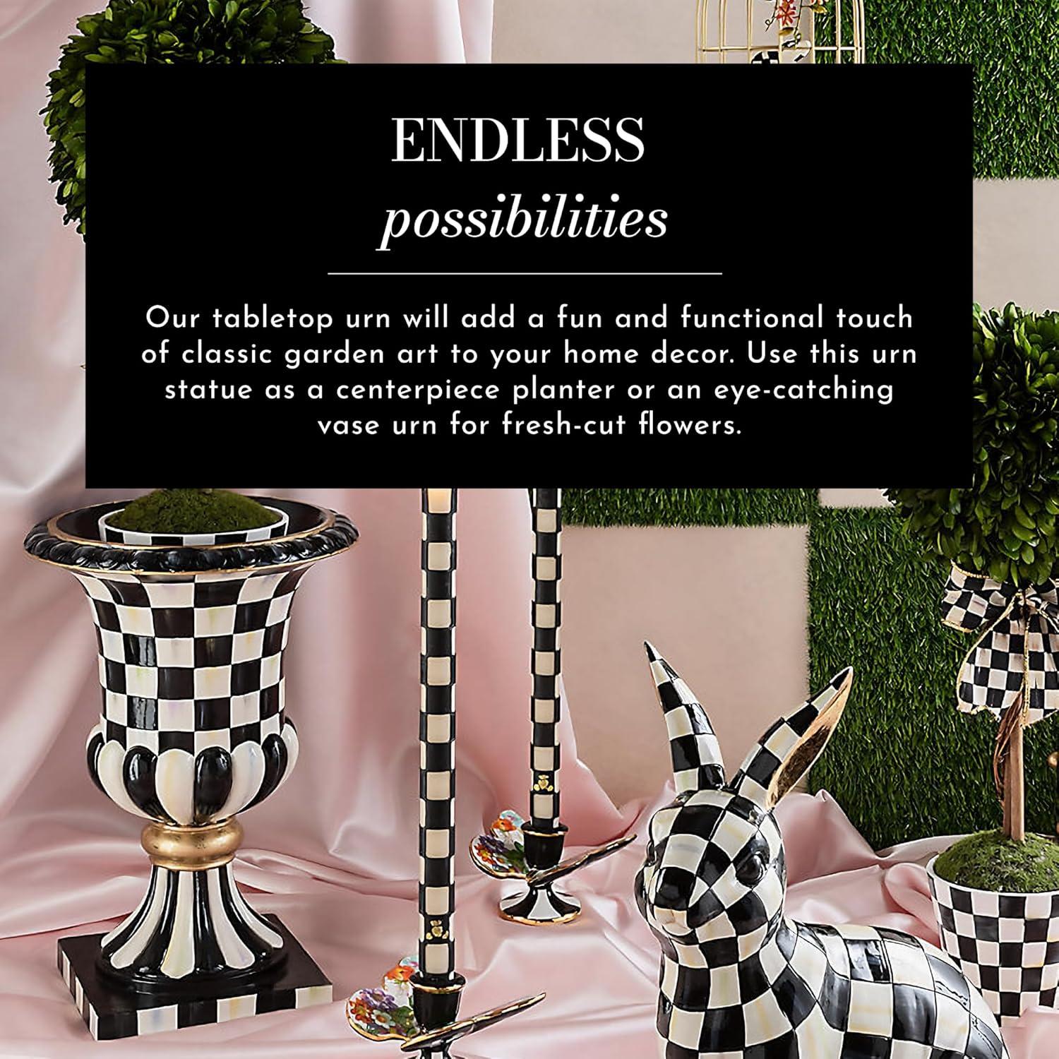 Get your hands on our newest MACKENZIE-CHILDS Pedestal Tabletop Urn, Decorative Centerpiece for Table, Mantel, or Shelf, Small, Black-and-White Courtly Stripe(Tall) and enjoy a limited-time discount offer.