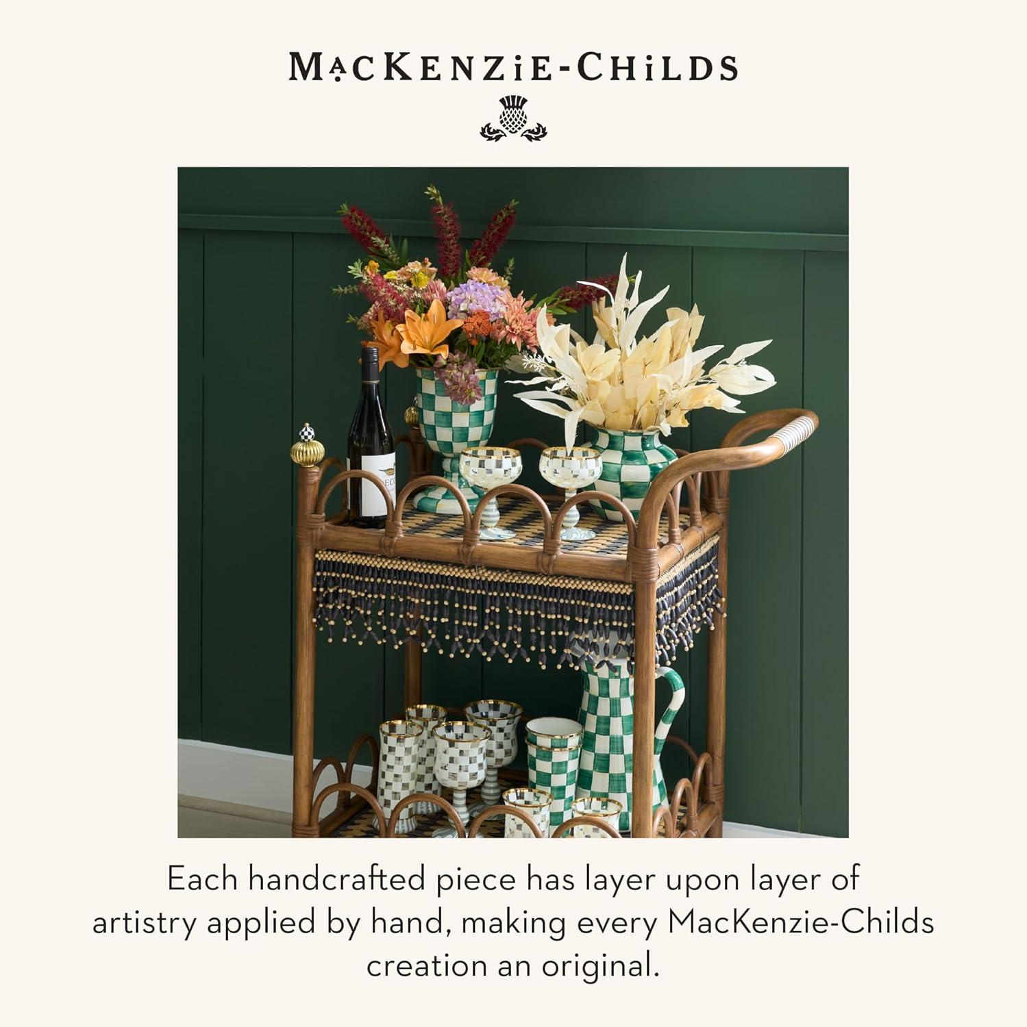 MACKENZIE-CHILDS Pedestal Vase, Decorative Centerpiece and Flower Holder, Green-and-White Emerald Check(Emerald Check)