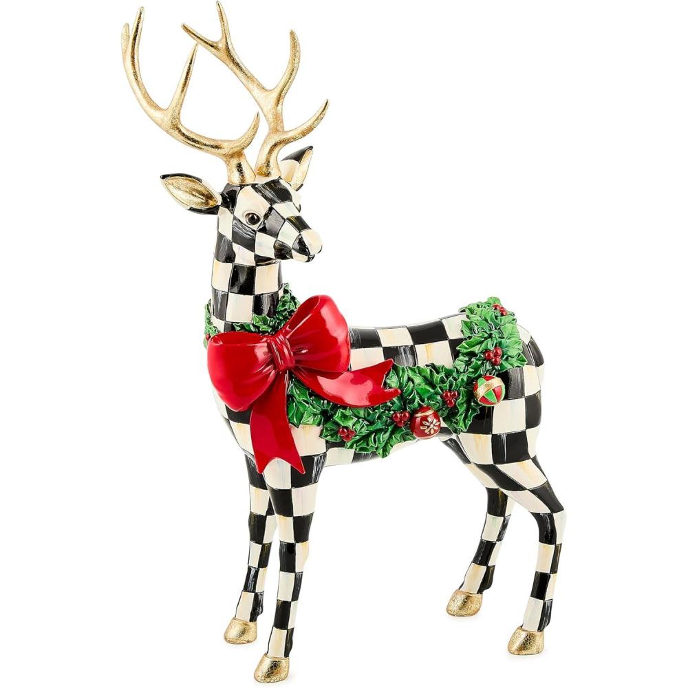 MACKENZIE-CHILDS Resin Deer Statue, Christmas Home Decoration, Resting, Holly Check(Standing)