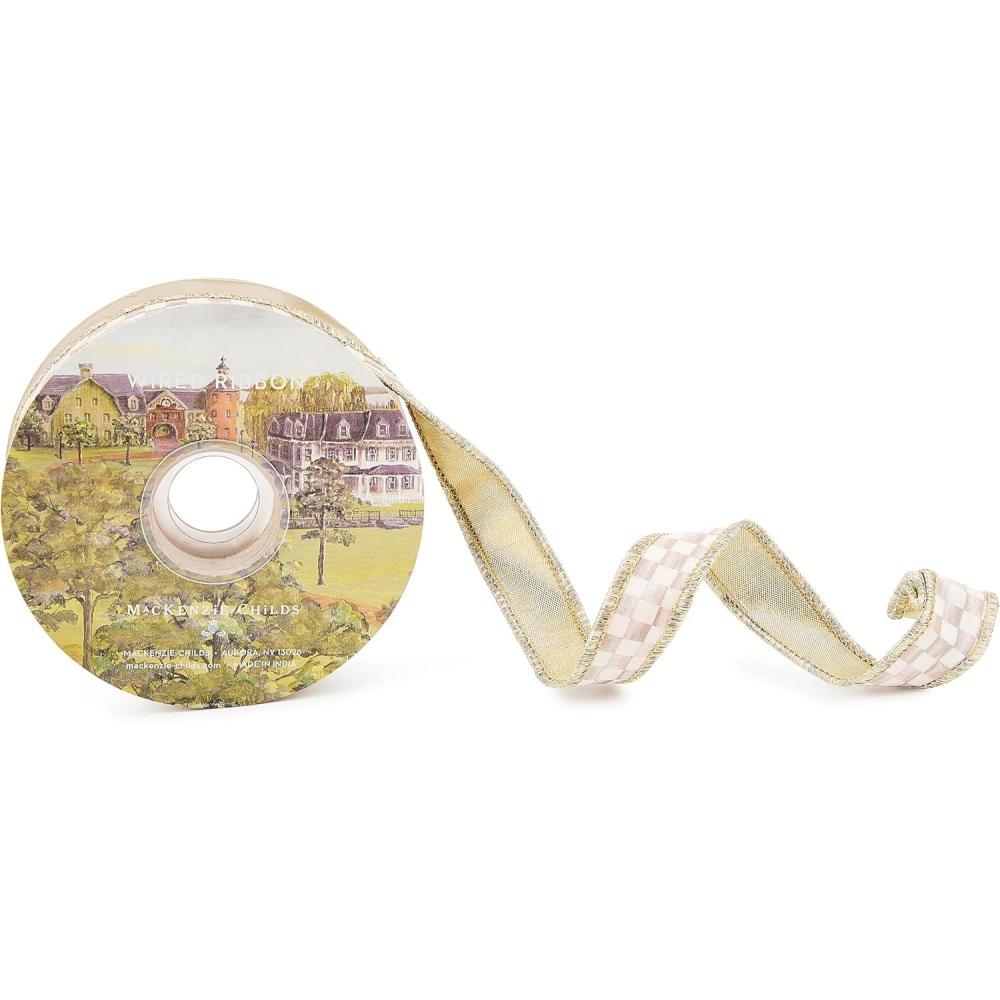 MACKENZIE-CHILDS Ribbon, Decorative Wired Ribbon for Christmas Gift Wrapping and Decor, 4 Inches, Brown-and-White Mocha Check Suede(Mocha Check)