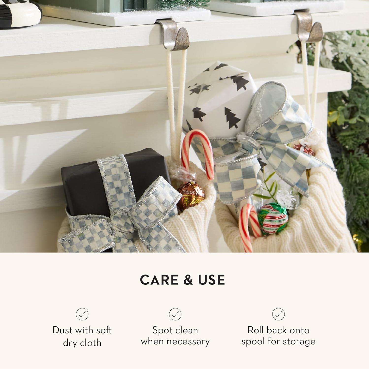 MACKENZIE-CHILDS Ribbon, Decorative Wired Ribbon for Christmas Gift Wrapping and Decor, 4 Inches, Brown-and-White Mocha Check Suede(Sterling Check)