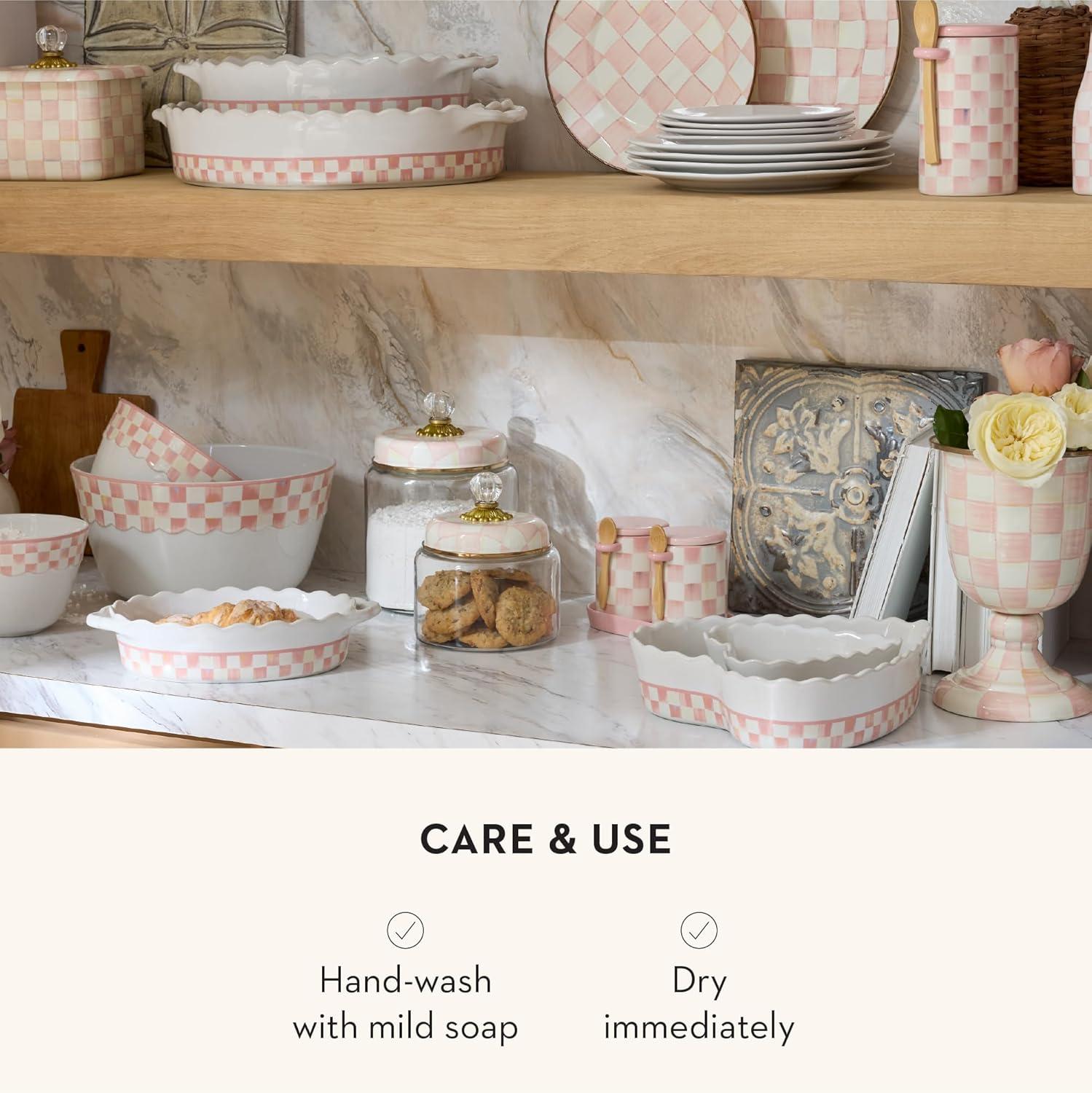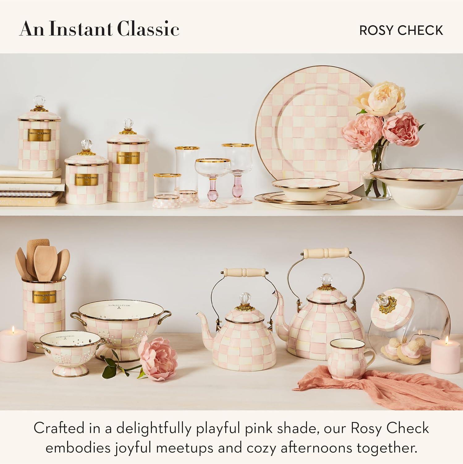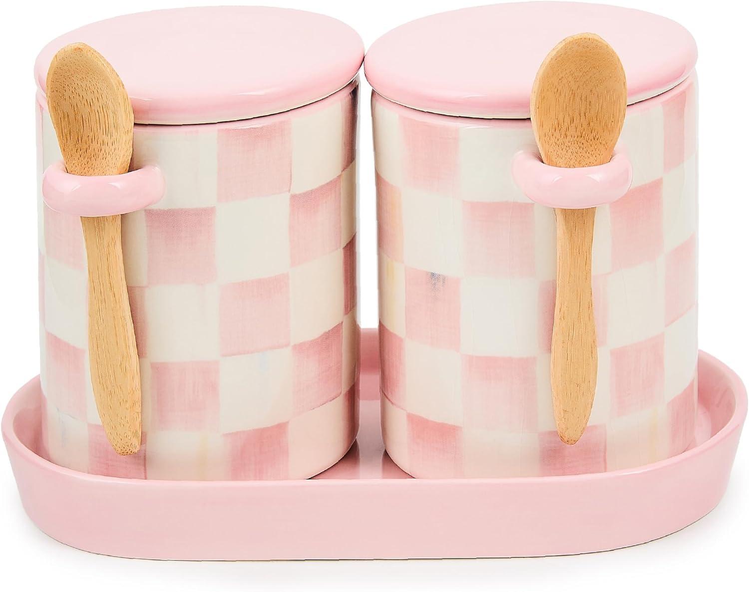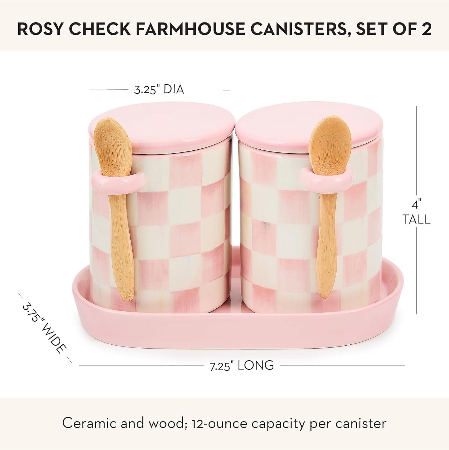 MACKENZIE-CHILDS Set of 1 Farmhouse Canister, Lidded Kitchen Canister with Spoon, Black-and-White Courtly Check(Rosy Check)