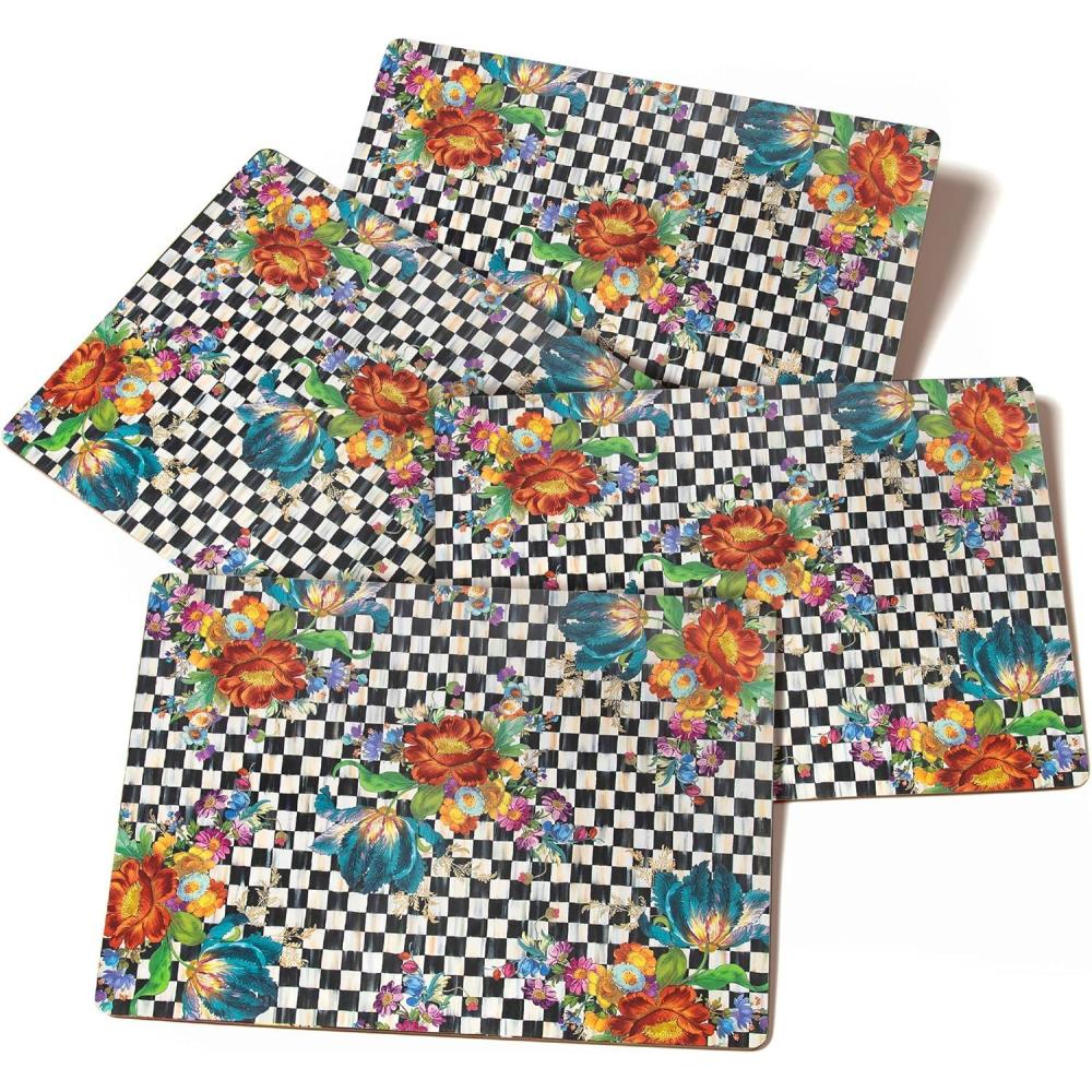 MACKENZIE-CHILDS Set of 4 Cork-Back Placemats, Hard-Finish Table Mats, Courtly Flower Market(Courtly Flower Market)