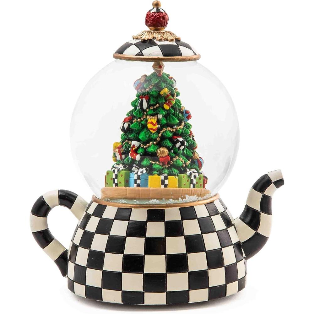 MACKENZIE CHILDS Snow Globe, Christmas Decor for Living Room, Holly Bear(Courtly Teapot)