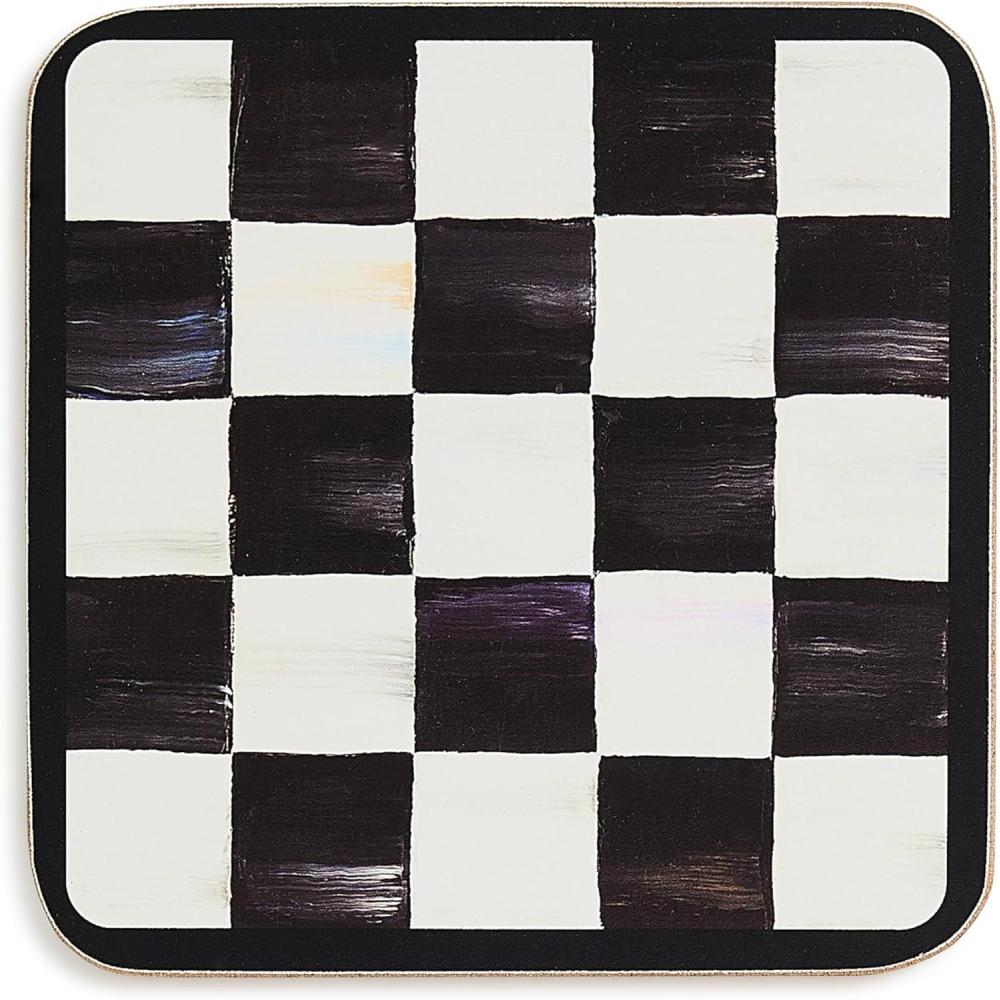 MacKenzie-Childs Square Cork-Back Coaster Set, Table Coasters for Drinks, Set of 4, Blue-and-White Royal Check(Courtly Checked)