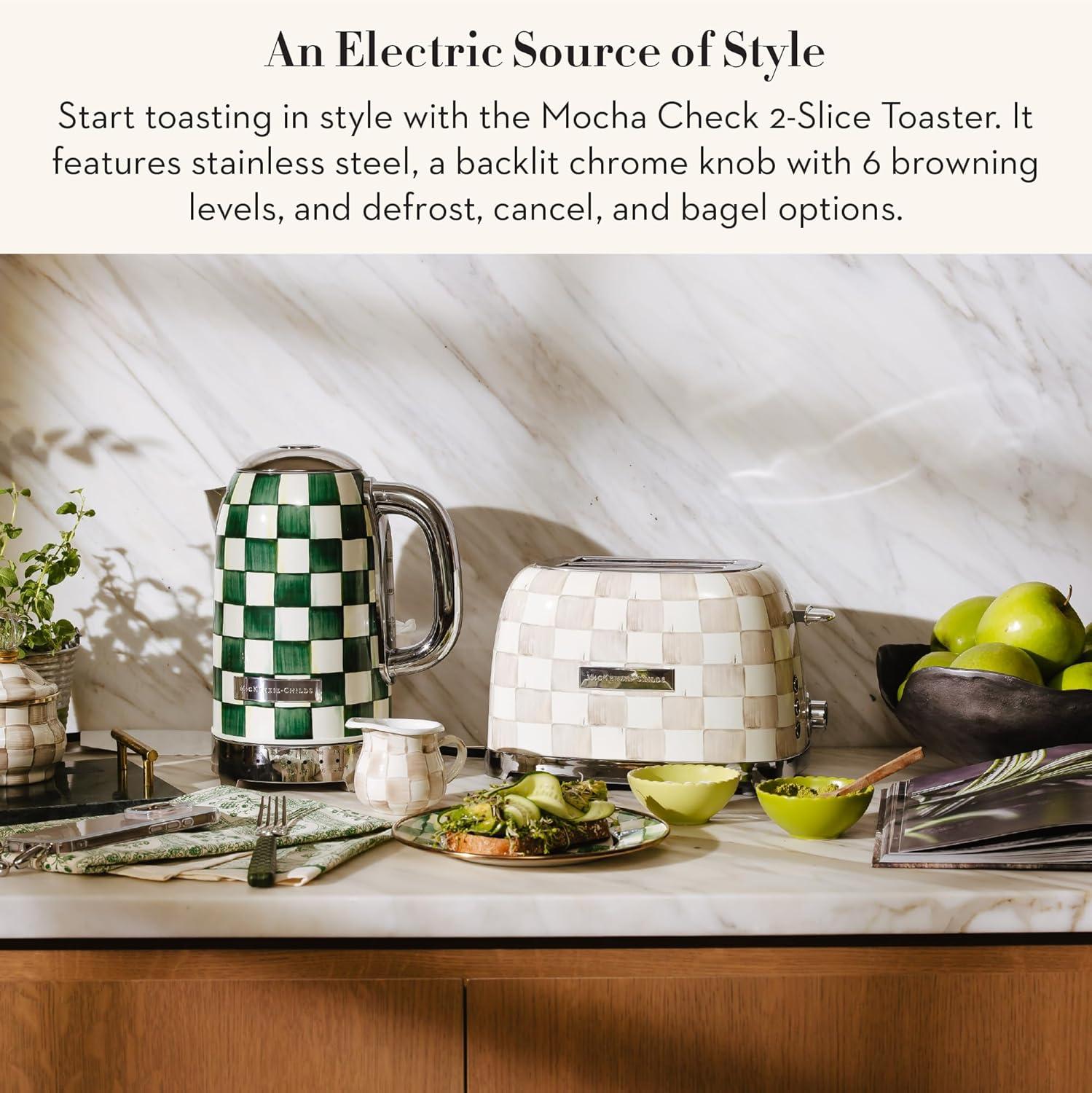 MACKENZIE-CHILDS Stainless-Steel Electric Kettle Bundle with Stainless-Steel 2-Slice Toaster, Brown-and-White Mocha Check