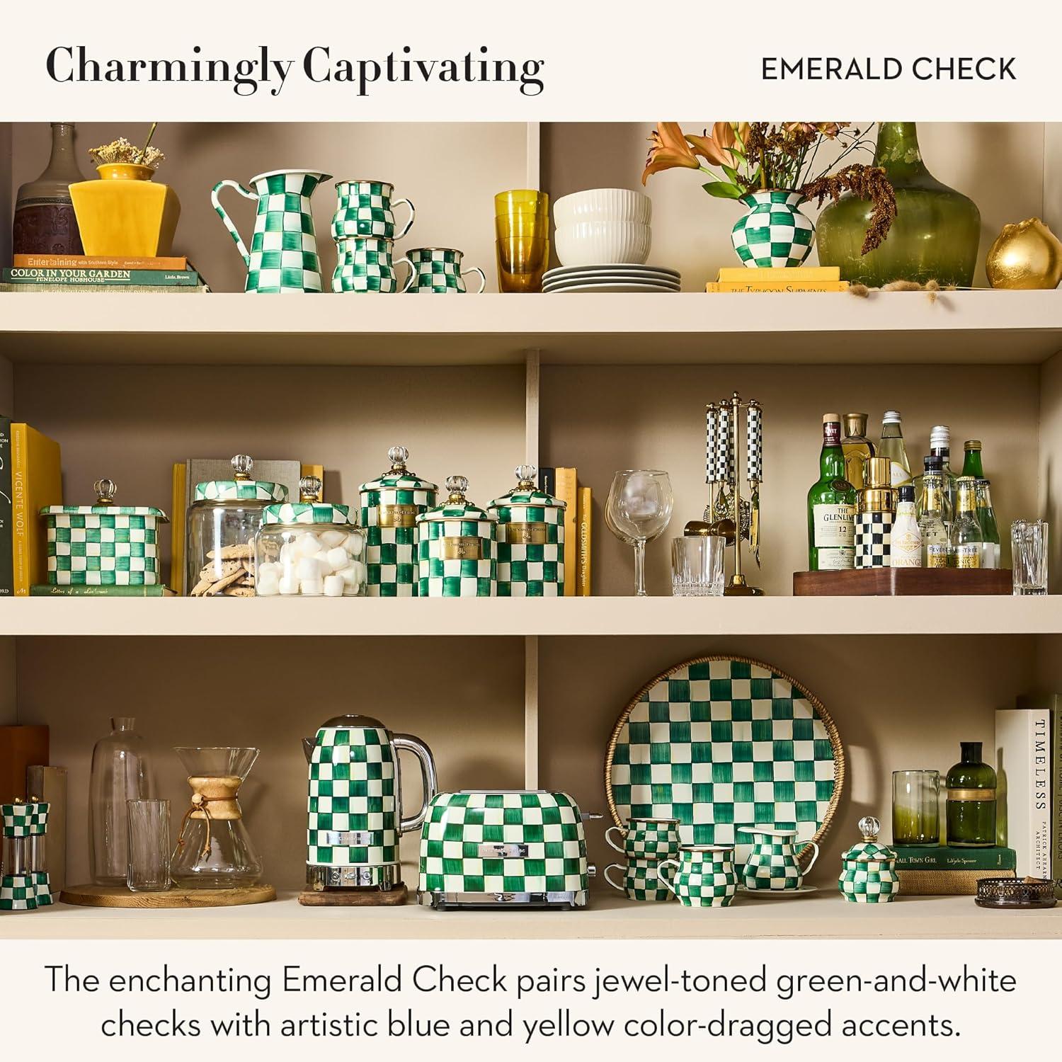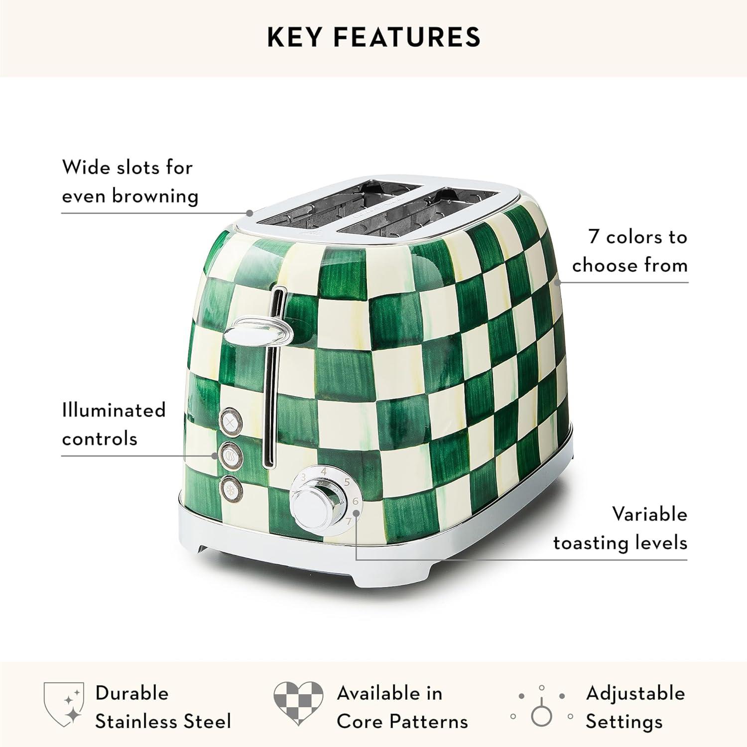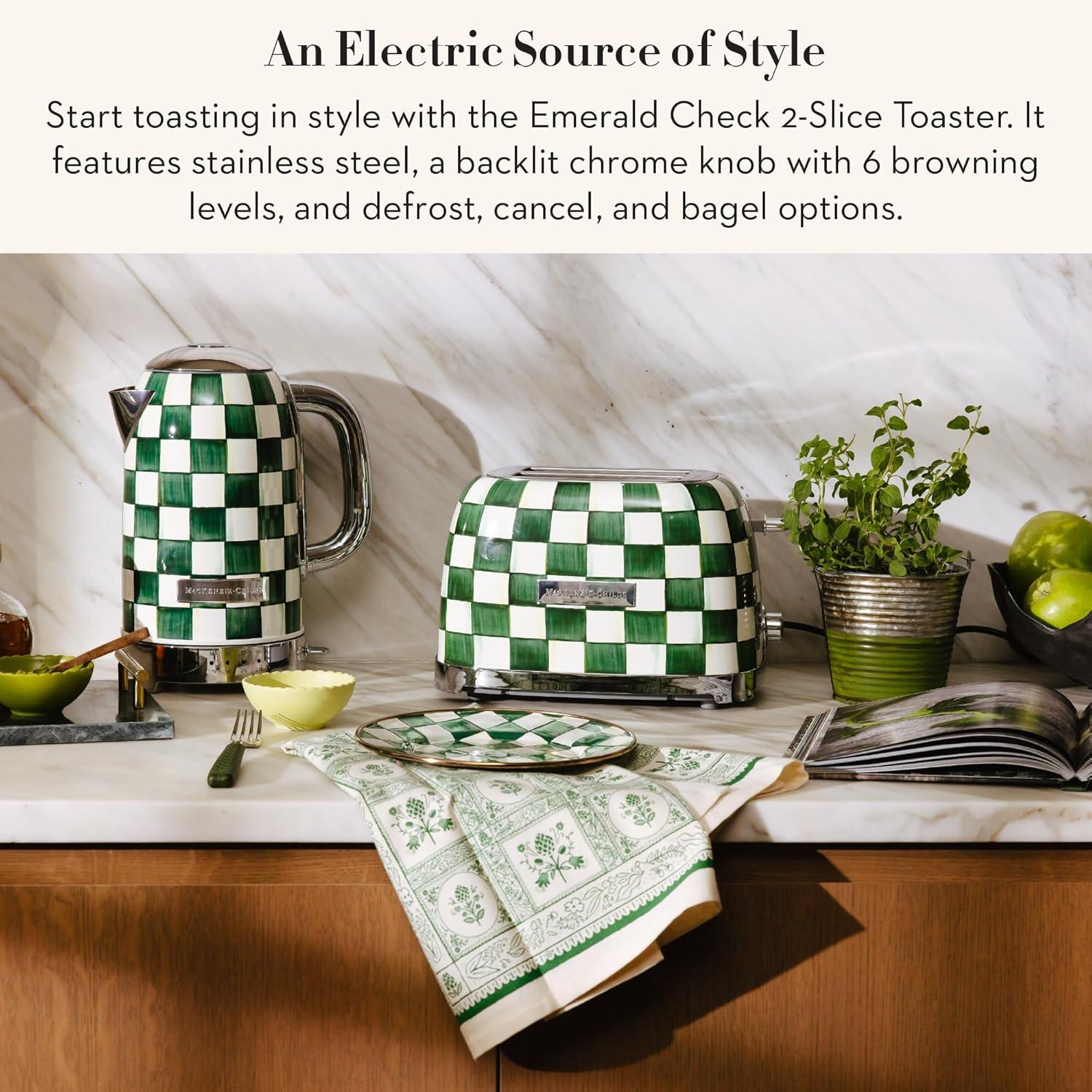 MACKENZIE-CHILDS Stainless-Steel Electric Kettle Bundle with Stainless-Steel 2-Slice Toaster, Green-and-White Emerald Check