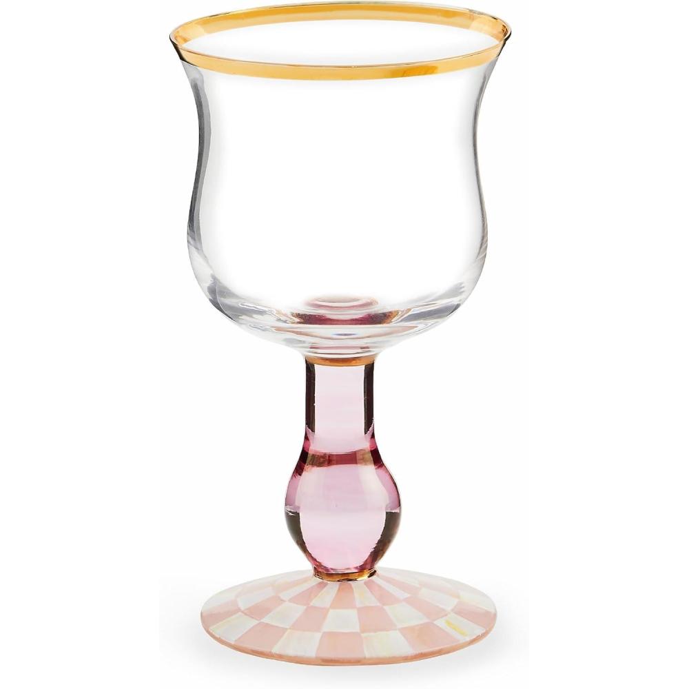 MACKENZIE-CHILDS Stemmed Wine Glass, Decorative Glassware, 12 Ounces, Deck the Halls(Rosy Check)