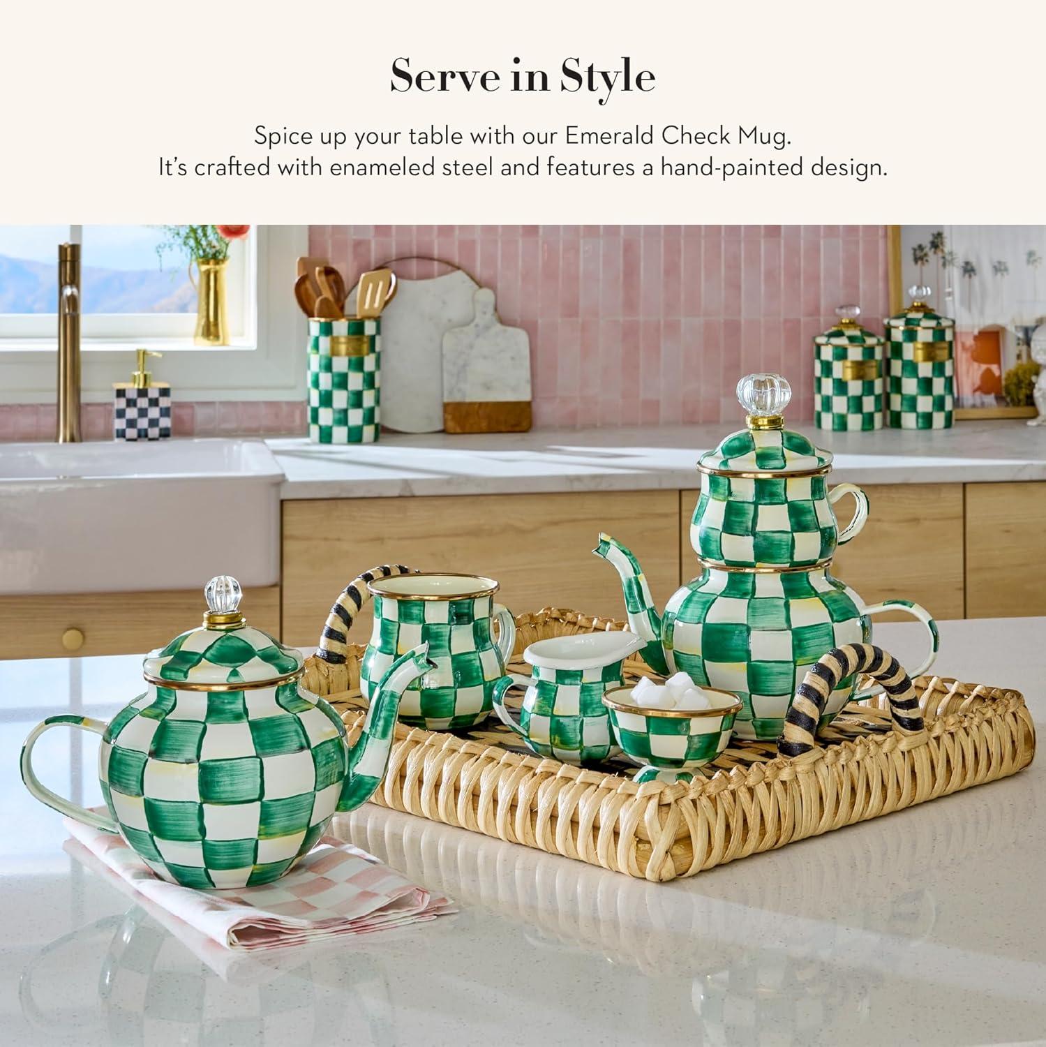 MACKENZIE-CHILDS Sterling Check Kitchen Canister, Decorative Gray-and-White Glass Storage Jar with Lid, Medium(Emerald Check)