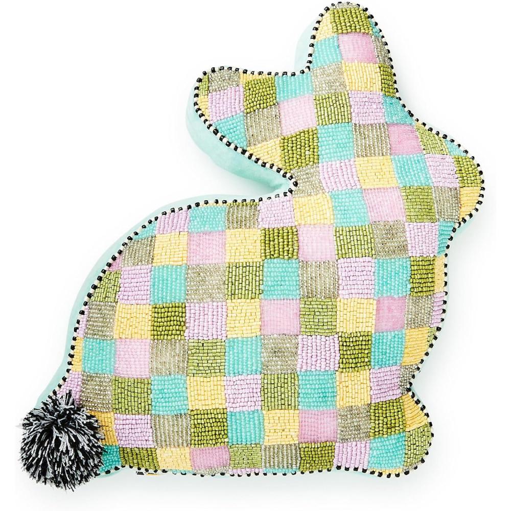 ELEGANT DECOR PIECE: The Multicheck Bunny decorative throw pillow features a classic bunny silhouette with beaded blue, green, pink, and yellow checks. Use this bunny-shaped pillow as a cute accent pillow or a seasonal spring decor piece.