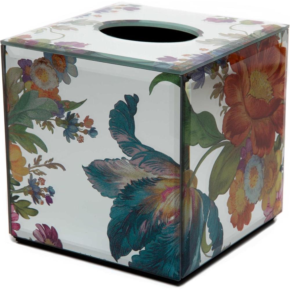 ELEGANT MODERN ROOM DECOR: Display our signature pattern anywhere in your home with this farmhouse tissue-box cover. Our Flower Market Reflections square tissue-box cover features a floral motif that’s printed under glass to add style to any room.