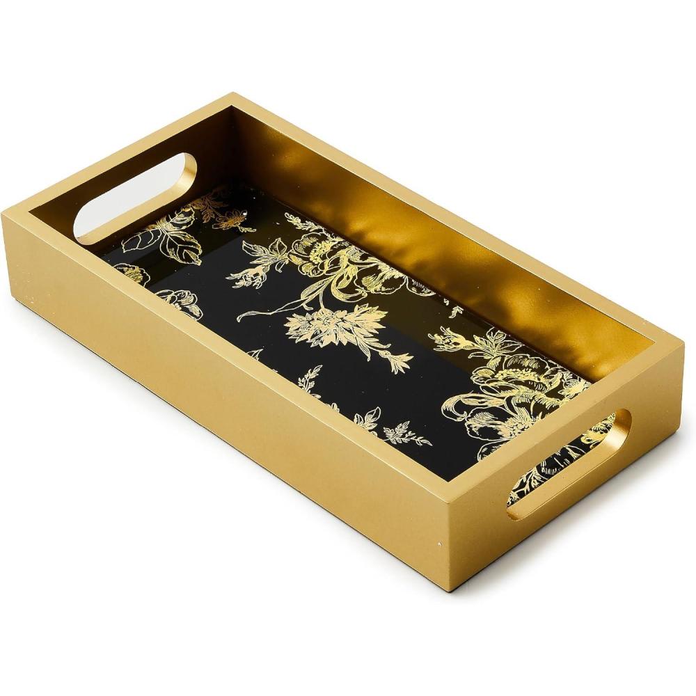Bring style to any space with a MacKenzie-Childs vanity tray! This modern bathroom counter tray with handles features our ornate floral motif for an elegant touch. It’s perfect for organizing restroom essentials like hand towels, candles, or decorative soap or displaying jewelry, perfume bottles, or any other item that could use a fashionable storage place. You can even use this piece as a chic serving tray or coffee table accent! Take a peek at the rest of our patterned bathroom, bedroom, and home decor to create a magnificent MacKenzie-Childs menagerie!